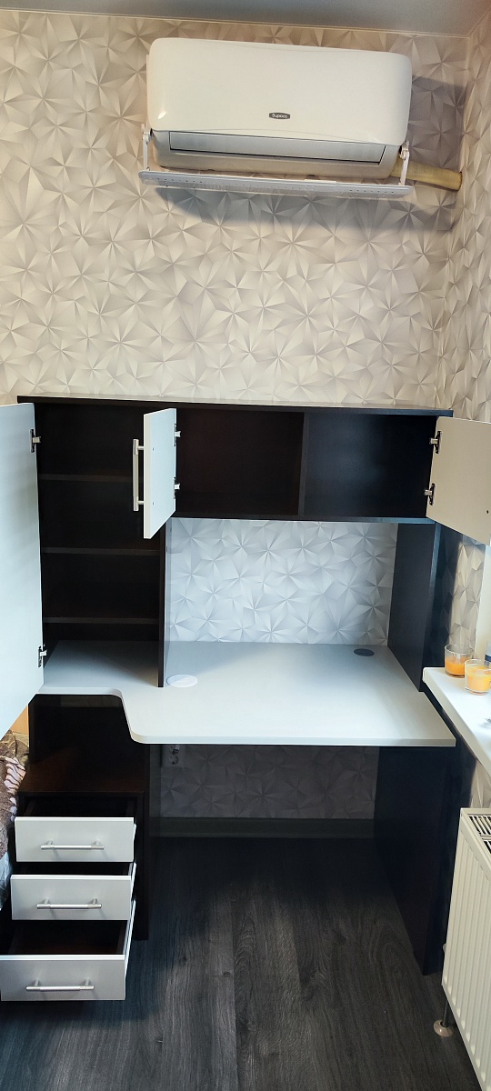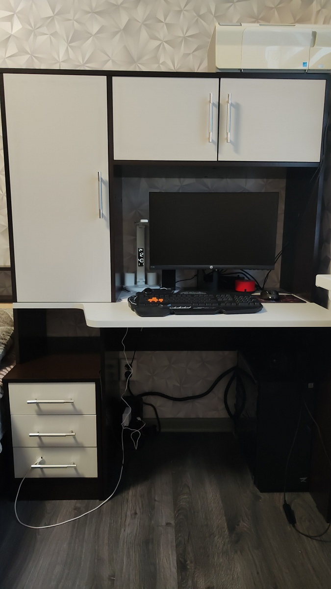 Заказ 00000638094, изделие ЭСКИЗ №00000638094 Колонка Млайн 2 BMS (450х2000х430)Заказывал колонку в феврале. Первый раз пользовался услугами этой фирмы, поэтому обо всём подробно. Плюсы и минусы будут идти вперемешку.Что понравилось, так это возможность при заказе настроить всё под себя - размеры, цвет каркаса, кол-во полок, срез под плинтус, фурнитуру, цвет стекла - всё можно править онлайн. Если бы я ещё заметил, что заднюю стенку из двп можно также утопить внутрь каркаса, то сделал бы и это, но, увы, оказался невнимательным. В итоге сделали всё точно по размерам. Но! Хотелось бы, конечно, побольше примеров фото различных цветов, что предлагаются на сайте - лучше в хорошем разрешении, а то ожидание и реальность могут не совпасть в итоге, когда изделие уже привезут на квартиру - у меня был цвет графит и ещё какой-то серый уголь, поэтому более менее всё сошлось, но я всё равно гуглил картинки, как этот серый уголь выглядит вообще - картинка на самом сайте на мой взгляд реальность не отображает.Также мне понравилось общение с менеджером. К сожалению, забыл как её зовут, но девушка была приветливая, ответила на все мои вопросы. Их было достаточно, так как я заказывал на этом сайте впервые и не знал, чего ждать. Посчитали вместе высоту полок и это привело к тому, что я решил добавить ещё одну. В общем, всё прошло довольно гладко. Дозвониться не составило проблем и вообще перезванивают быстро.Теперь минус - это время изготовления. В итоге за несколько дней до назначенной даты, мне позвонили и сказали, что придётся подождать ещё дней десять, так как нет одного из цветов (того самого "серый уголь"), что я указал в заказе. Такие моменты неприятны, но пришлось подождать.Доставка ничем особенным не отличалась - принесли тяжёлую коробку, занесли в квартиру - чуть было не забыли забрать деньги за заказ, пока я не настоял на этом) Оплата, кстати, по факту. Авансов никаких не было, что честно сказать, удивительно. Но и сумма у меня не ахти большая была, около 21 тысячи.Собирал сам. И тут, конечно, у меня большие претензии к инструкции - она представляет собой сборочный чертёж и помещается на одной стороне А4 листа, по сути этот же чертёж вы можете увидеть на сайте в фотографиях товара. Интересно, что это, что называет, типовая инструкция, как будто вы купили конфигурацию по умолчанию с сайта, то есть никаких дополнительные полки там не указаны и вообще размеры не указаны. Не знаю, может это обусловлено вариативностью возможной комплектации. Ну и нарисовано так, что над некоторыми местами приходится подумать, а вернее собирать приходится по интуиции. В итоге после сборки у меня осталось приличное кол-во крепежа, для которого я не нашёл никакого применения. Также на одной из боковых панелей часть дырок была заклеена на торце (см фото). Я уж было подумал - забыли просверлить, стал отдирать покрытие - и вуаля - под ним оказались нужные дырочки. Чувствуется, немножко колзох, если честно. А ещё, когда осталось только повесить дверь, и я радостно поднял её из коробки - под ней оказался такого же размера панель дсп цвета графит. По началу я немного запаниковал - как я мог забыть поставить такую большую деталь?! - но выяснилось, что на ней нет маркировки и вообще на инструкции её нет - так что это, видимо, запасное что-то или для жёсткости - не знаю. Так и стоит теперь у меня на балконе, сомневаясь в смысле свое