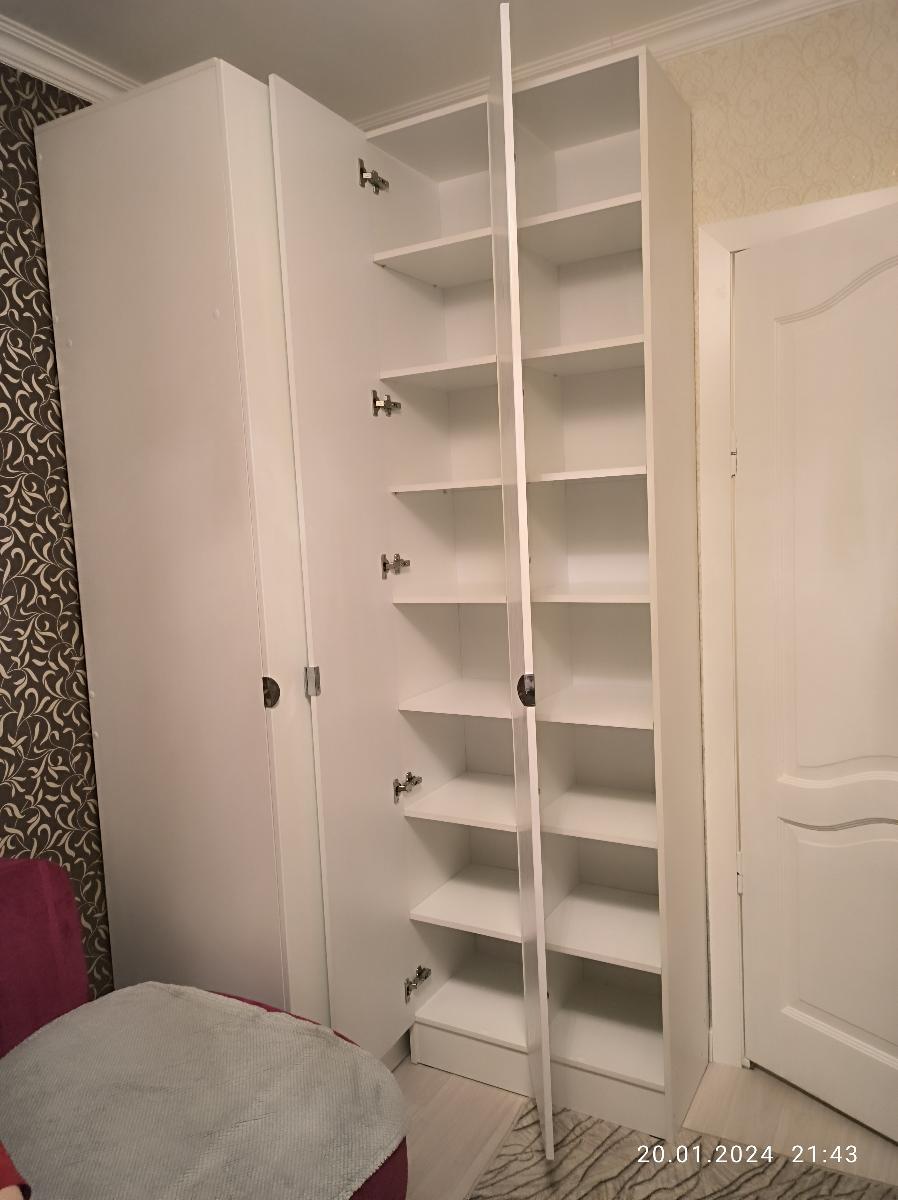 Вообще классный шкаф, все понравилось, вписался в интерьер очень стильный дизайн, хорошее качество, конфигуратор на сайте безусловный плюс! Сразу по пунктам!Плюсы:Классный конструктор на сайте под который все могут изготовить на любой вкус.Разметки и отверстия засверлены отлично без перекосов все ровненько.Комплект фурнитуры с запасом, хотелось бы вместе кучи саморезов запасные эксцентрики, они в целом слабенького качества. Наклейки на конформаты чтоб не видно было отверстий с запасом, заглушек с запасом.Задняя стенка из ДСП а не картонка как обычно бывает отлично.Качество фасада отличное, покрашено с бархатистым эффектом на ощупь.На каждом элементе ДСП наклейка тоже удобно, но без инструкции бесполезны.Минусы:Распил местами не в размер попался зазор в миллиметр еле зажал его. В целом ДСП распилен на 7-8 балов. Есть опыт сборки.Инструкция ужасная, один листик со схемой. Если бы не опыт в сборке думаю заказывал бы сборку.Эксцентрики хлюпкенькие нужно класть про запас, 2 сломалось и 1 не хватило.Консультант сказал что фасад будет с обеих сторон при уточнении по итогу приехало как на фото только на одну сторону. В моем случае не критично подошло. Но в целом момент важный.