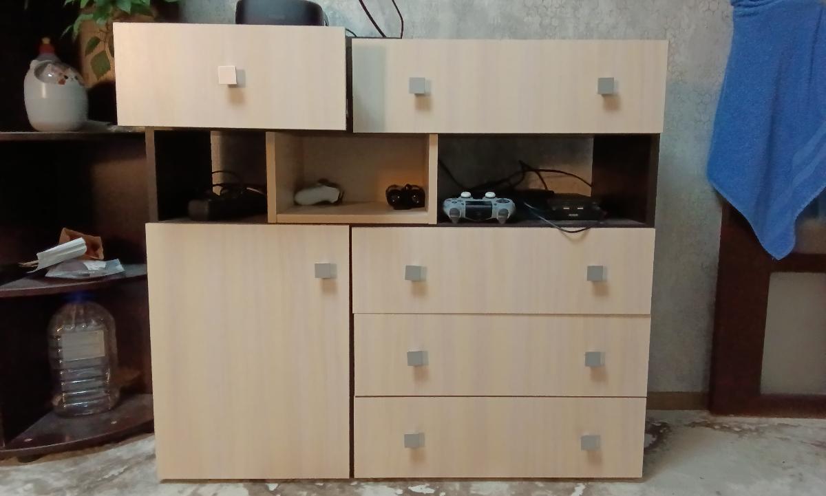 Комод понравился, собрали сами. Фурнитура качественная, приятная рукам, вместительный. Удобное расположение ящиков. Понравился современный дизайн комода. Удобно разместилась приставка с различной гарнитурой для неё. Брали в комнату подростка, ему очень понравилось по дизайну и функционалу. Хорошее сочетание цена-качество. Порадовала доставка, привезли раньше чем изначально договорились. На сайте у продавца можно настроить высоту, ширину комода и глубину ящиков.