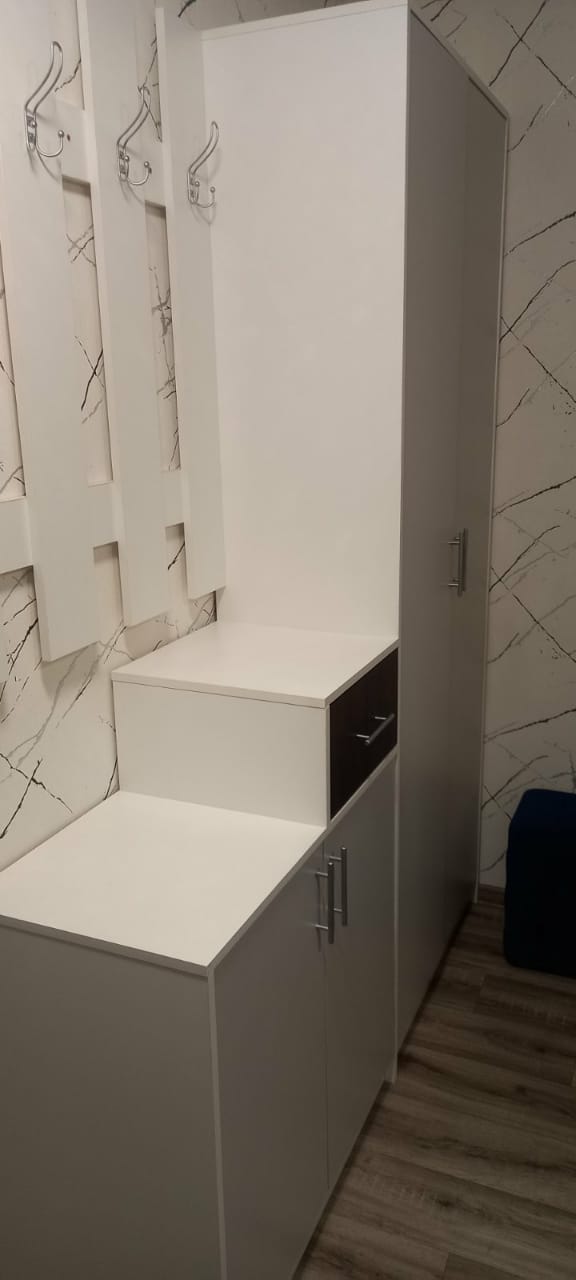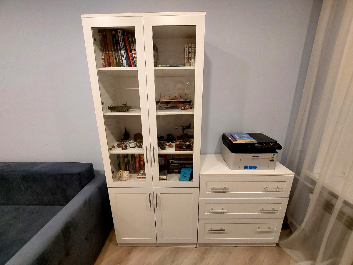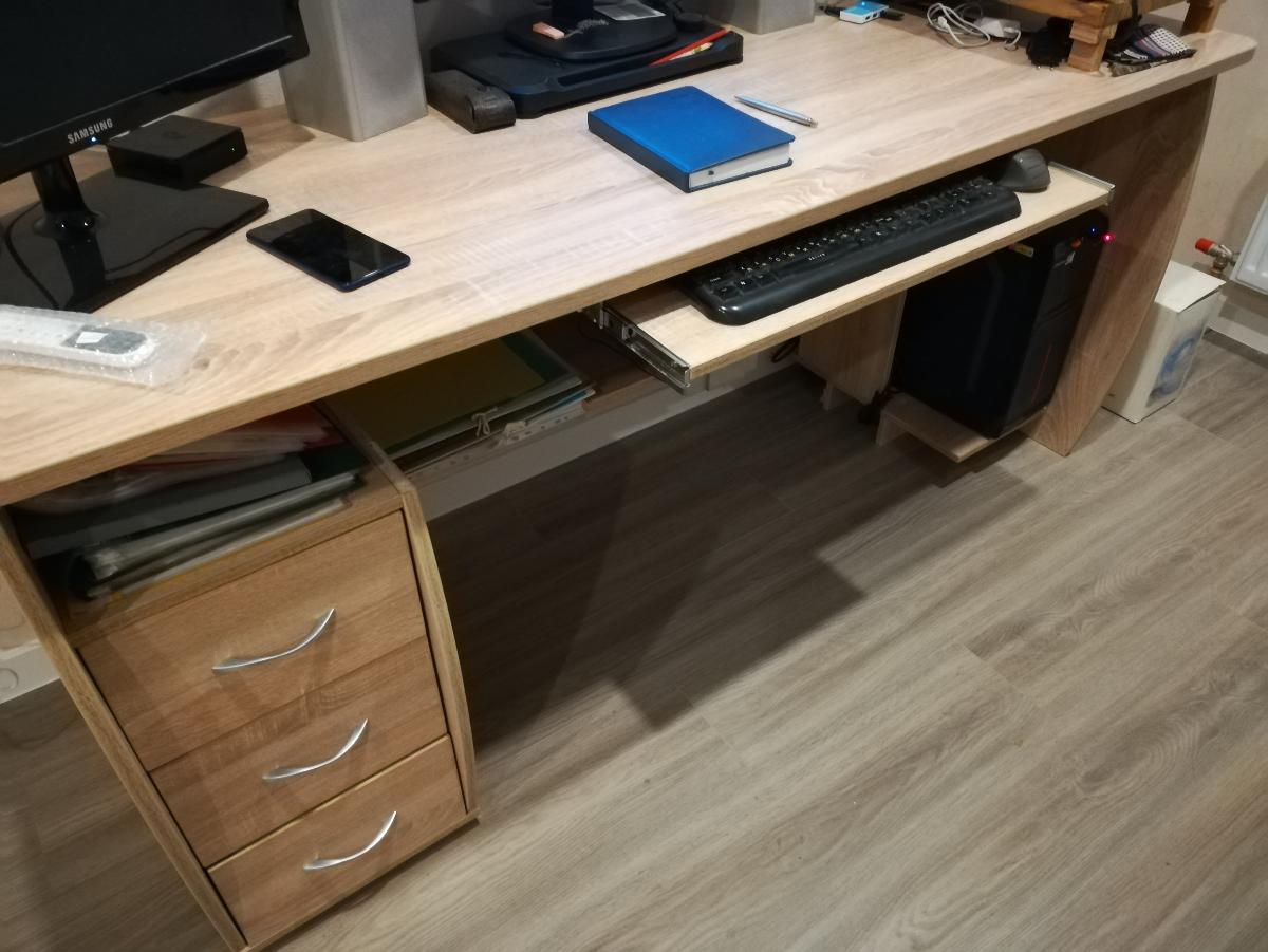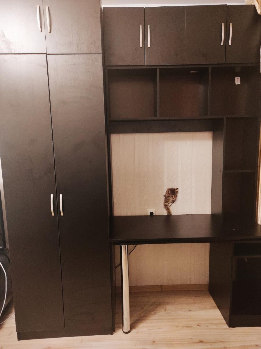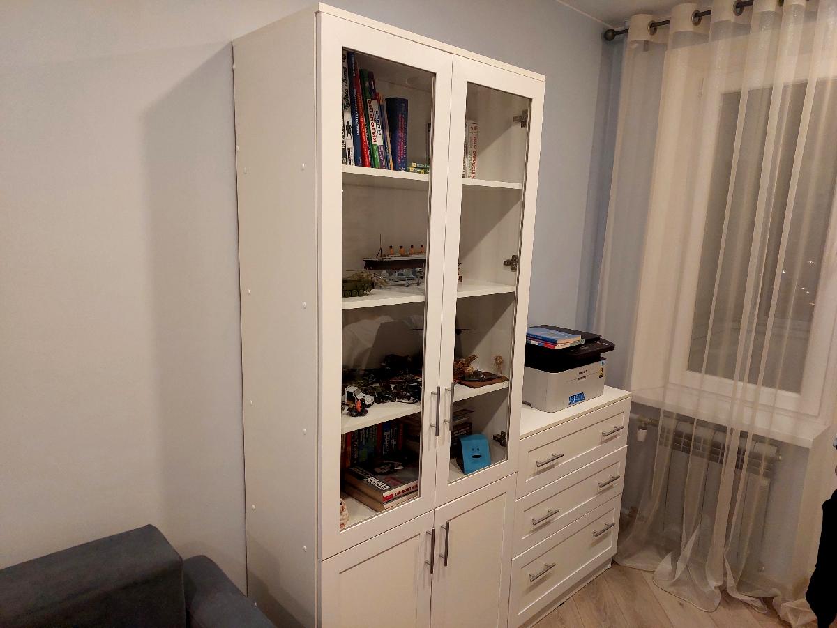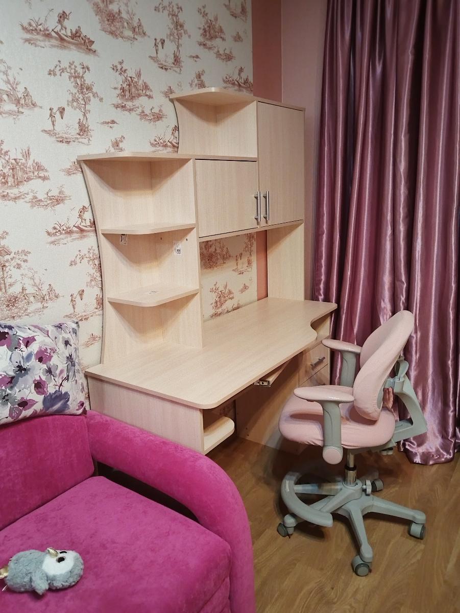 На этом сайте нашли шкаф нужной нам конфигурации, а именно нужна была конструкция письменный стол+ шкаф для одежды. Данный стол очень подошел в небольшую комнату, есть выдвижной стол, это очень удобно при наличии компьютера или ноутбука на основном столе. Наш заказ изготовили даже раньше обещанного срока, привезли четко в указанное время. Очень понравилась возможность подгона размера некоторых полок, а так ширина и высота без проблем подбирается на сайте, все просто и понятно. Магазин прислал чертеж под наши размеры, мы смогли подкорректировать некоторые детали, это очень большой плюс. Так, ну и один минус все же есть, это инструкция сборке, шкаф не самой простой конструкции и, конечно, пришлось немного поломать голову над сборкой, хотелось бы более подробную инструкцию. Но мы справились, мебель собрана, никаких дефектов нет, в пользовании уже более месяца и все очень нравится. Заказ 00000545439