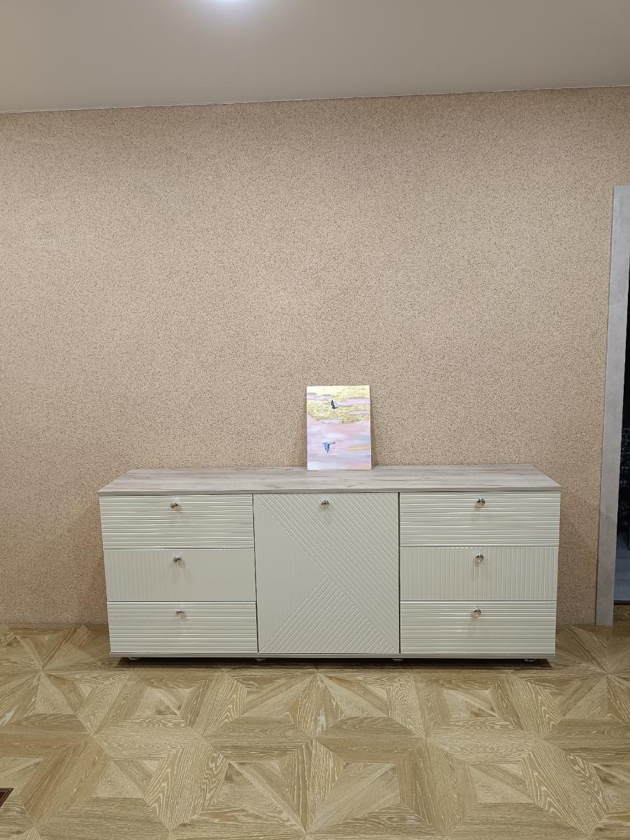 Комод понравился, самое главное что устроил размер, выбрала максимально возможную для этой модели длину (1900х800х400), цвет корпуса - Дуб Крафт Серый, цвет фасадов - Жемчужный Глянец 8003. Качество устроило, для данной ценовой категории прям супер. Ящики без доводчиков, все стандартное (тут сэкономила) и кстати неплохо открываются и закрываются, мне нормально. Для центральной двери взяла петли с доводчиком, плавно закрывается. Деревянные ножки как на фото изначальной модели сделать нельзя (можно только в стандартных цветах корпуса, вариантов мало и мне не подходит), нашли решение, менеджер предложила хромированные ножки, результатом довольна). Сборку не заказывали, собирали сами, все предельно понятно, но не хватило гвоздей. Стандартные ручки кнопки хром пластиковые, совсем не понравились (оставила в заказе их, т.к. думала что будут видны хромированные ножки и должно сочетаться), но ножек почти не видно, поэтому буду менять, а вообще можно было и тут заказать хорошие, в последний момент от них отказалась. В целом взаимодействие с магазином очень комфортное, обо всем информировали, доставка была перенесена на 1 день позже, но привезли в указанный временной интервал, все отлично упаковано, без повреждений.