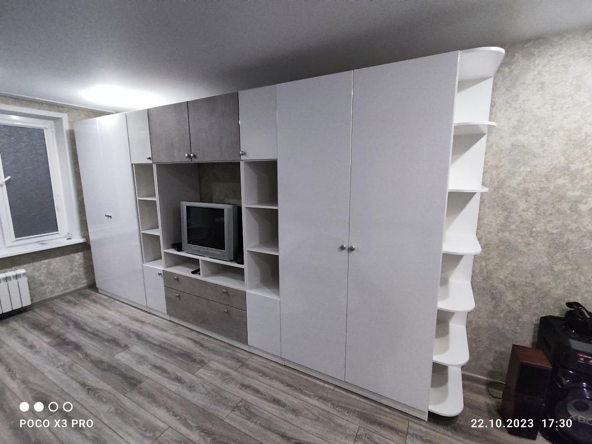 Стенка очень понравилась. Сборка легкая, не смотря на убогую инструкцию. Фасады и цвет корпуса подбирали под интерьер. Срок изготовления три недели. В целом все понравилось. Товар рекомендую. Цена - качество на путь.