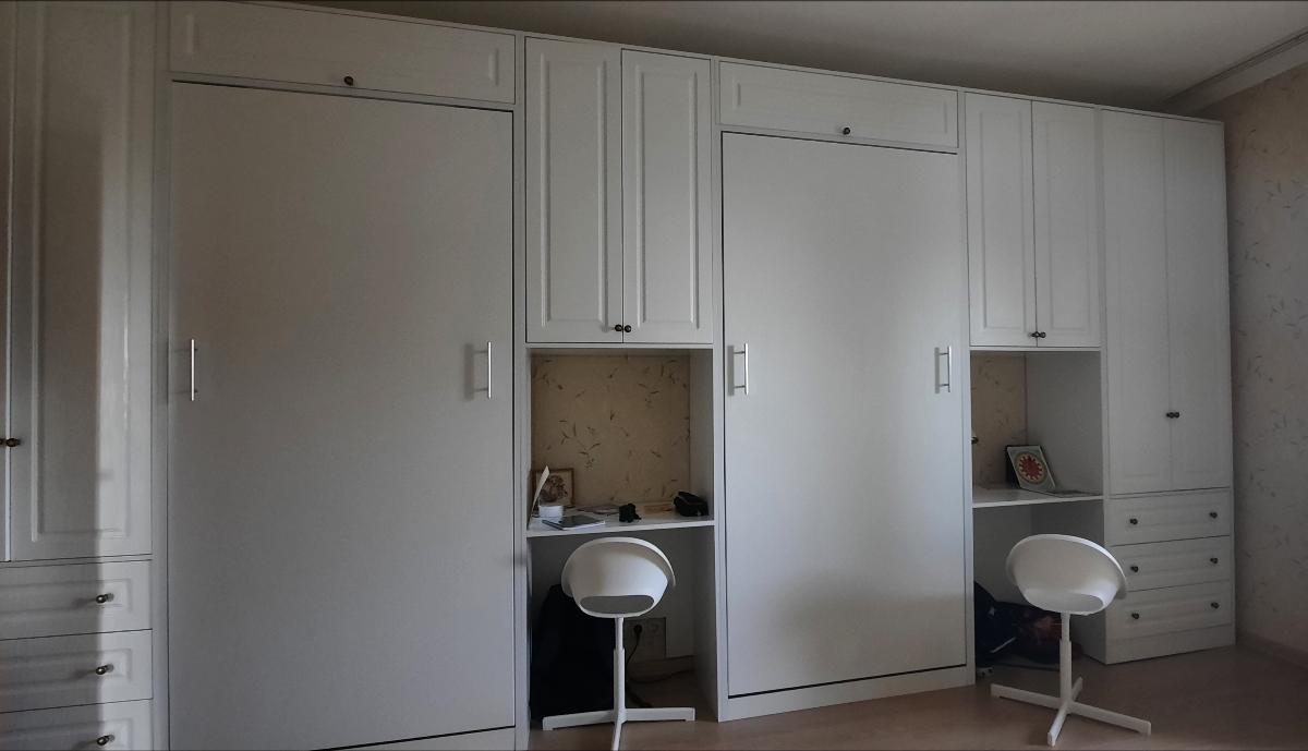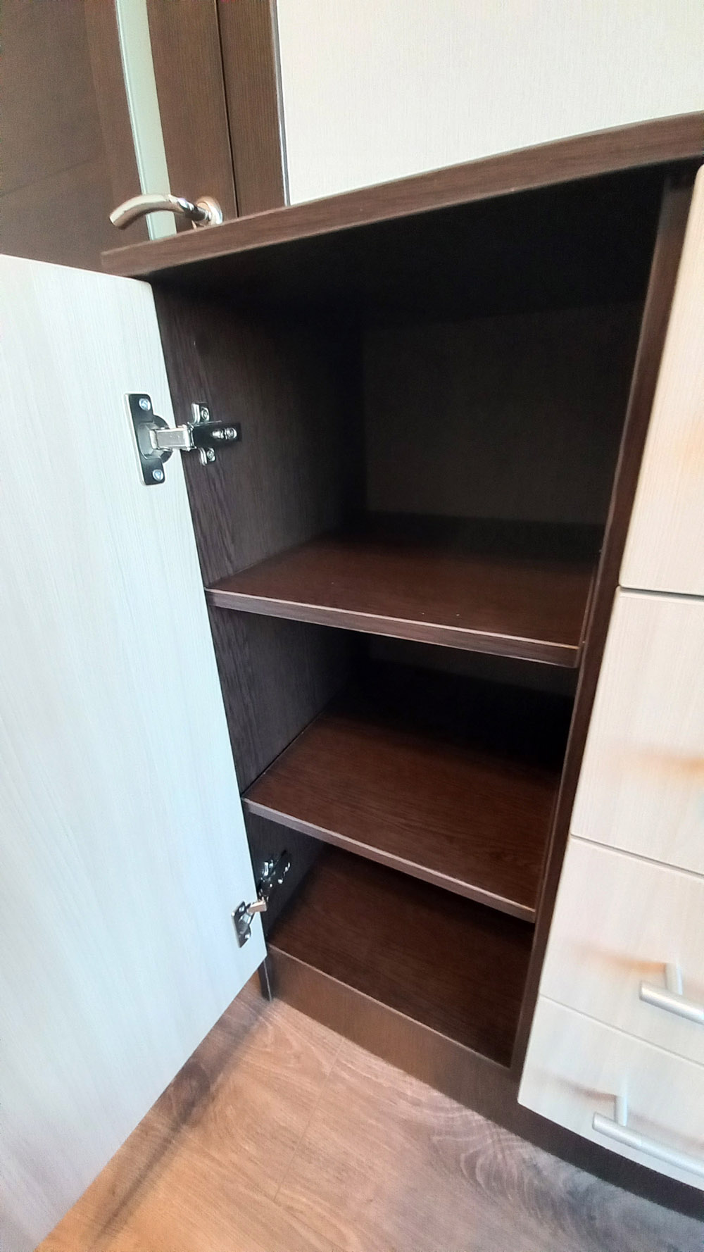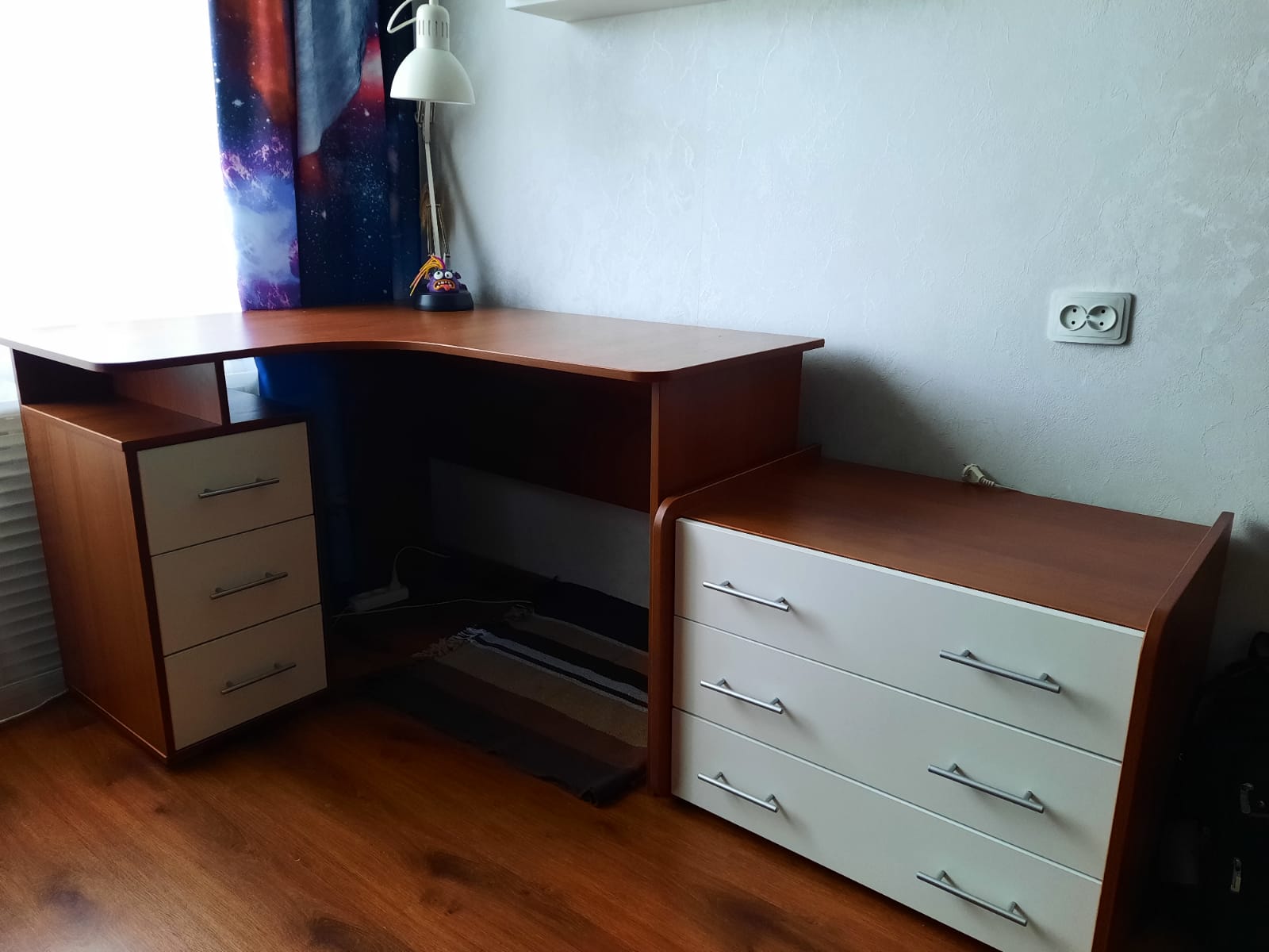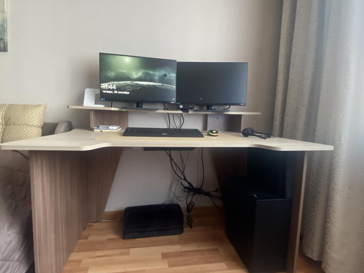 Купили такой стол несколько месяцев назад. Заказали в стандартной комплектации за исключением: столешницы (толщина 20мм - для надёжности), петли на створках двери с доводчиком (чтобы не хлопать, т.к. дверки достаточно тяжелые), дополнительно заказали круглые смягчители под опоры в пол (но они оказались не подходящими, т.к. стол ОЧЕНЬ тяжёлый и толку от них - ноль). Отдельно купили центральную опору под столешницу, т.к. на неё приходиться залазить для мытья окна. Доработал самостоятельно сверху трубой-перемычкой, на которой разместил трековые светильники - для дополнительного освещения рабочего места и детские медали и грамоты. Отдельно хочу сказать по сборке - инструкция ОЧЕНЬ слабая и собирать по ней крайне сложно (могу сказать это, как человек, занимавшийся ранее сборкой мебели). Так же без помощи кого-либо, скорее всего, Вы вряд ли соберёте. Ещё, есть моменты, когда элементы собираются друг на друга и приходится соблюдать определённый порядок сборки (про который в инструкции не сказано). Если ты этого не учёл, то приходится разбирать уже собранные части, т.к. иначе собрать не получится (касается установки верхних шкафчиков на крышку нижних).В целом столом довольны - встал от стены до стены как и планировалось! Мощный, добротный, вместительный! Берите - не пожалеете, если хотите нечто подобное!