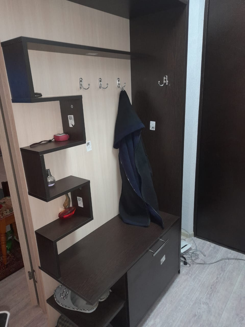 Получили в подарок за 1р., каждая деталь подписана, конечно собирать не мало, на крючки можно вешать только короткие куртки, т.к которые уже чуть длиннее лежат на полке, впринципе тумба с вешалкой хорошая и оо качеству и дизайну, спасибо!