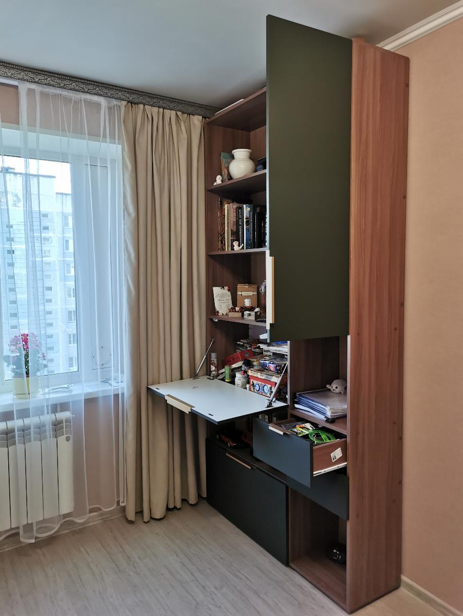 Обычно отзывы не пишу, но тут сделаю исключение. Гостиную делали по моему проекту, хотел по максимум до потолка и в ширину комнаты. По ширине зазор до трубы составил всего 3 миллиметра, до потолка 10 сантиметров. Мебель поднимали грузчики около часа (В лифт не помещалось из-за большого размера), их было очень жалко, т.к. очень тяжелые коробки были. Когда уже её начал распаковывать сборщик (Александр – вообще мега человек, в одиночку всё это собрал, я сперва ему не поверил, что он один её соберёт). Из-за размера под потолок её собирали уже на месте стоя (Собрать на полу не получилось бы из-за высокого размера). Так же в квартире кривые полы, и сборщик как мог это исправил (Вернее исправил очень хорошо). В итоге я остался очень доволен. Был нюанс, что в комплект не доложили петли угловой, но сборщик сам об этом уведомил компанию, и мне их довезли и сборщик приехал поставил дверь. Мебель очень добротная (недавно маме обустраивал квартиру и видел, что продаётся в других местах). Всем советую!