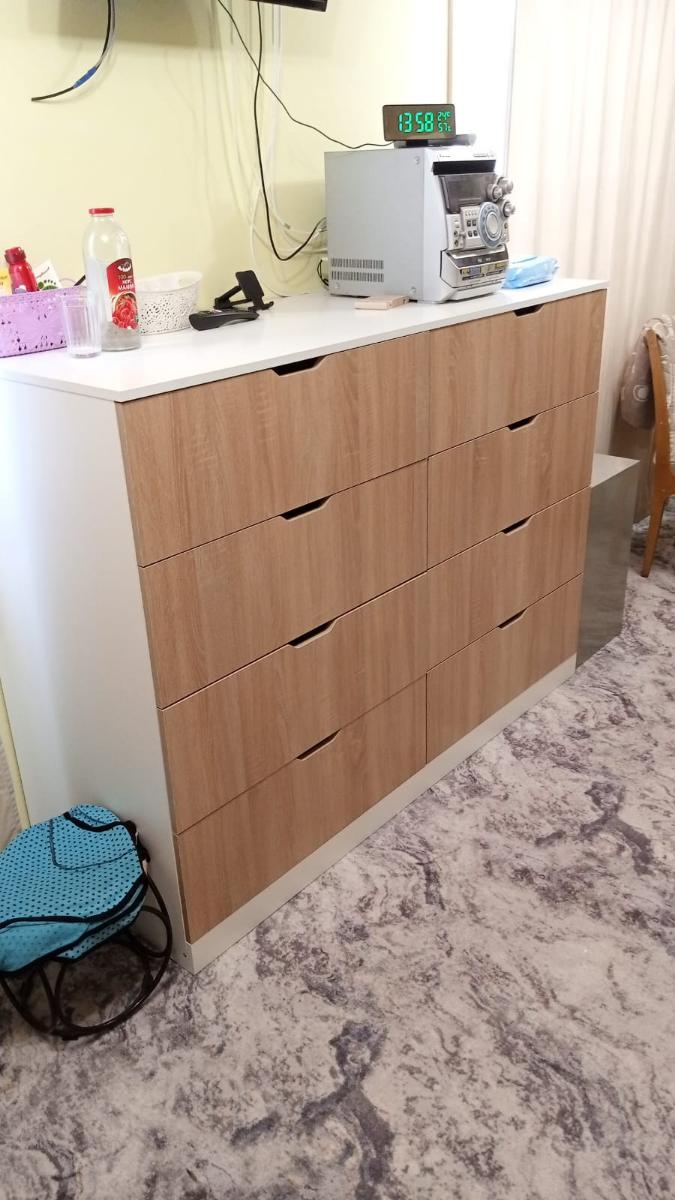 Заказ 00000447089, изделие Комод Нордли Nordli 12 отличный комод, заказываю мебель не первый раз, всегда есть скидка на последующие заказы. Хорошо то, что можно заказать любые размеры, любые расцветки, любую фурнитуру в комплект. Комод очень удобный, большой, глубокий, фурнитура супер, шкафы едут как по рельсам. Советую заказывать мебель, наша семья вся довольна.