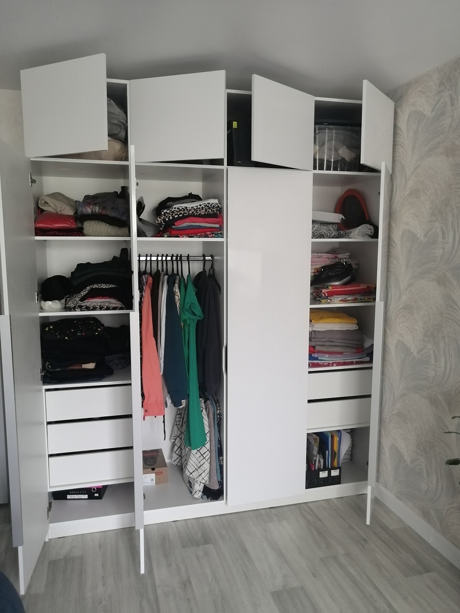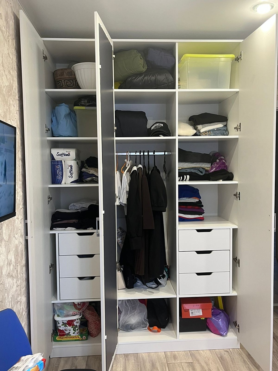 Шикарный шкаф, очень удобный, сделала наполнение под себя. Размеры тоже делала нестандартные. Особая благодарность сборщикам - приехали очень быстро, собрали за час, без вопросов и претензий, что он под потолок!!!