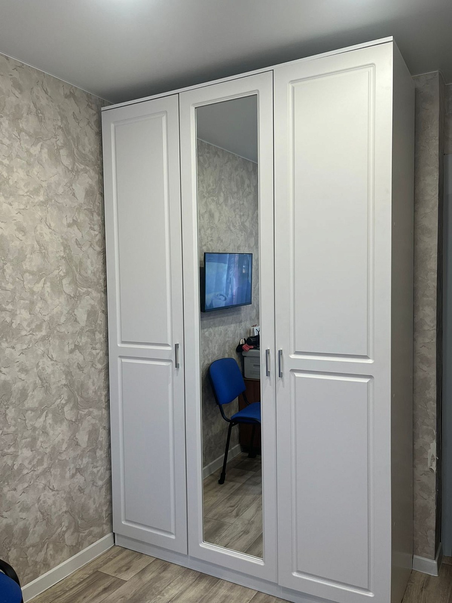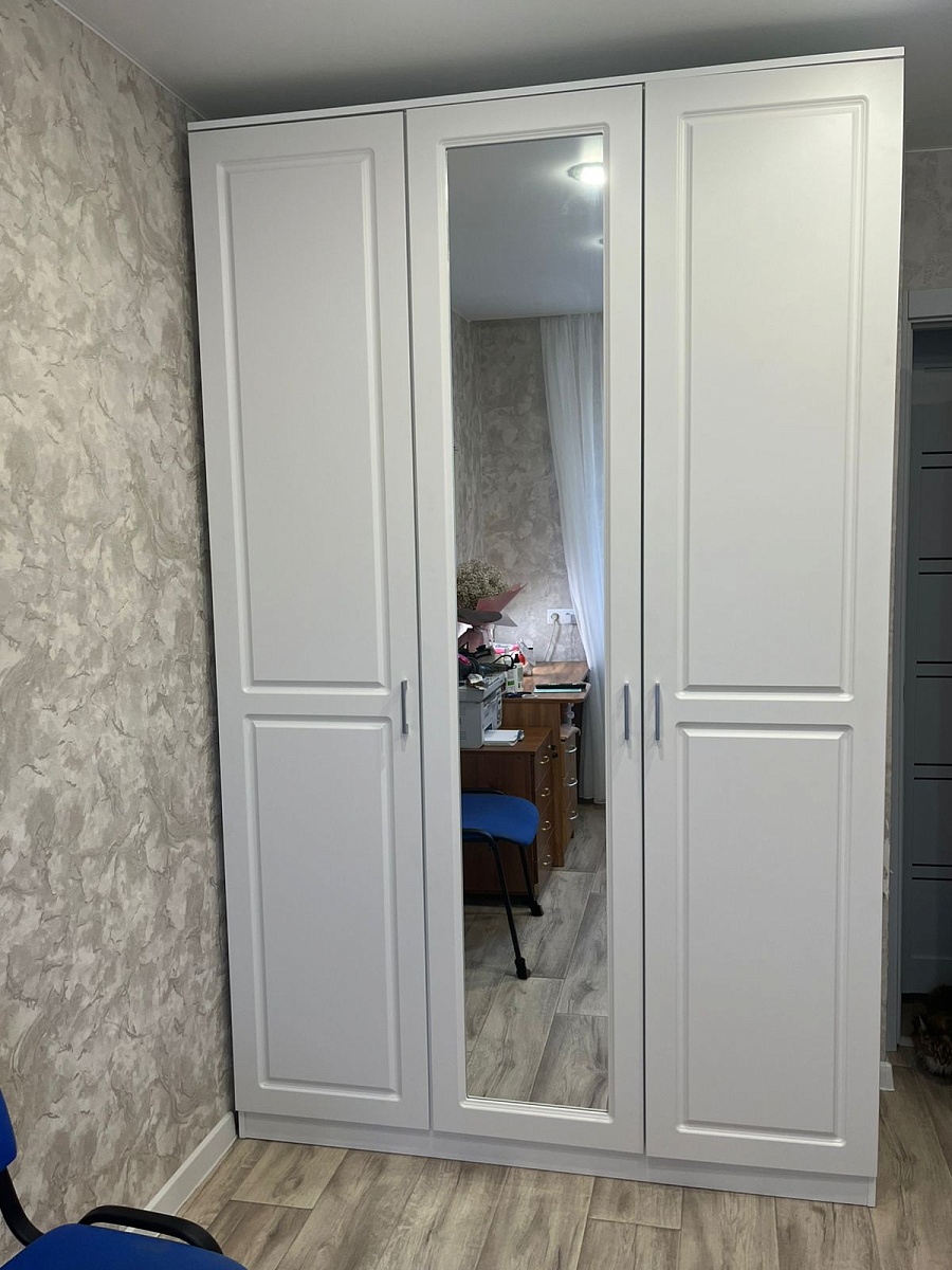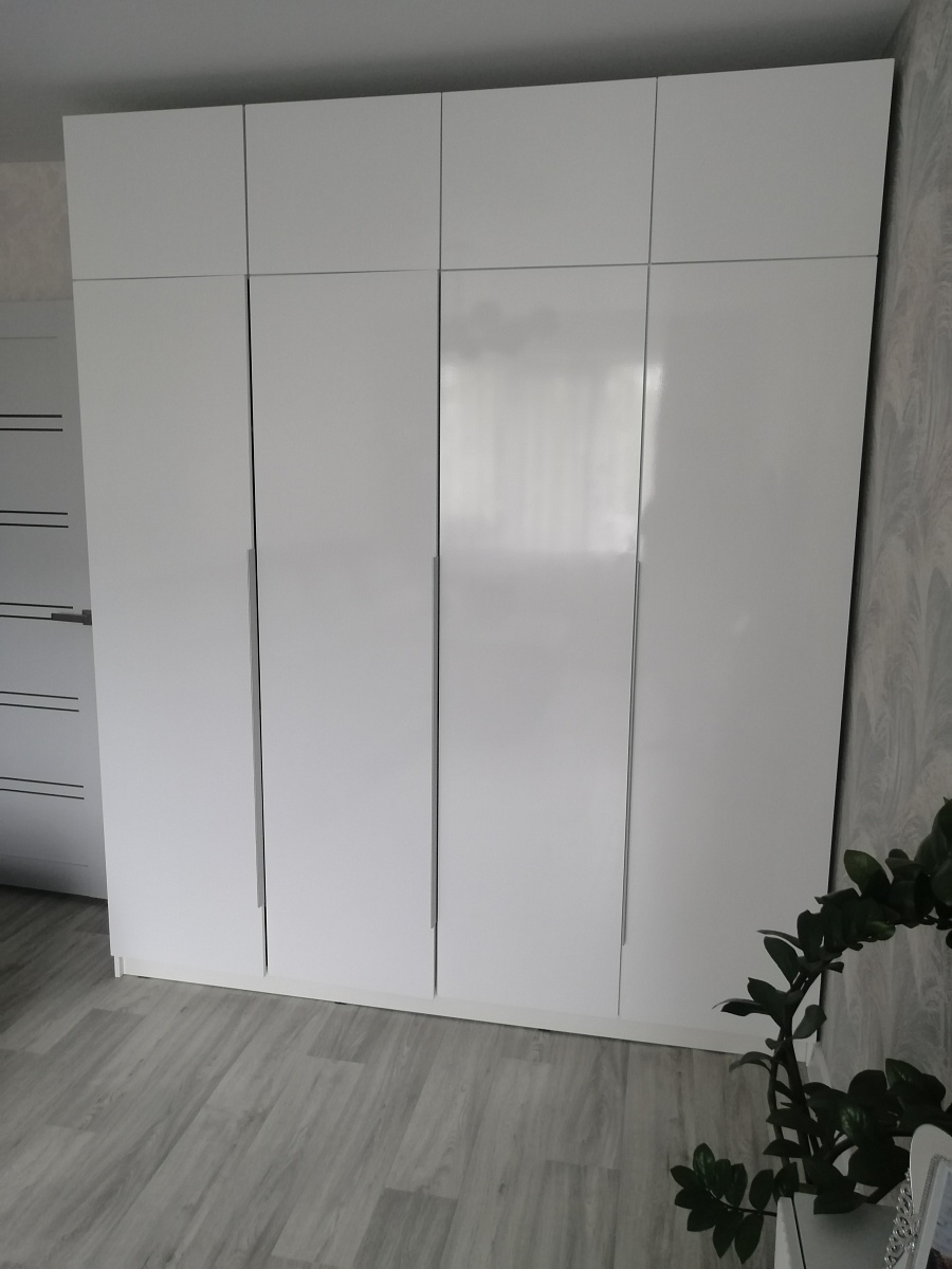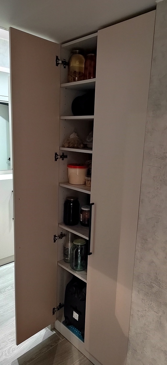Шкаф распашной Остин Лайт 23 BMS (700х2050х440), заказ 00000204767. Делали ремонт в коридоре и необходимо было заменить два шкафа, прихожую и дверцы на антресолях. Всё заказали здесь. Заказывали оба шкафа Остин через сайт (Лайт 3 BMS и этот Лайт 23 BMS). Самостоятельно поменяли размеры, цвет фасадов (Тэффи L) и цвет самого шкафа (серый), кромку лицевых частей на 2 мм, ручки оставили эти (понравились), петли поменяли на Блюмовские с доводчиками. Внутри поменяли штангу на полки (6 шт), сделали перфорацию, чтобы в процессе эксплуатации можно было переставлять полки на нужную высоту. После оформления заказа на сайте, перезвонила менеджер (минут через 20), еще раз всё уточнила и перепроверила, помогла с точными размерами, чтобы шкаф точно встал в нишу. Всё изготовили быстро. Позвонили и согласовали день доставки. Доставка хорошая, оформляли с поднятием в квартиру. Комплектация полная, всё целое. Выдали документы с гарантией и телефоном компании по сборке. Позвонили туда и через час с нами связался сборщик, согласовали уже с ним дату и время. Отличный парень по сборке мебели. Собрал нам сразу два шкафа и прихожую за 4 часа. Спасибо, что появился такой интернет-магазин! Цена шкафа намного ниже, чем заказывать в компаниях по изготовлению мебели на заказ (узнавали в 5 компаниях) и сроки изготовления в несколько раз быстрее. Спасибо, что появился такой интернет-магазин!