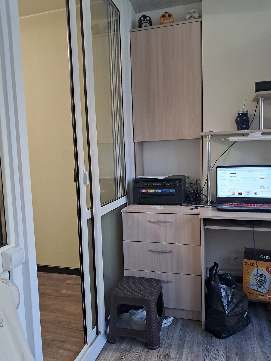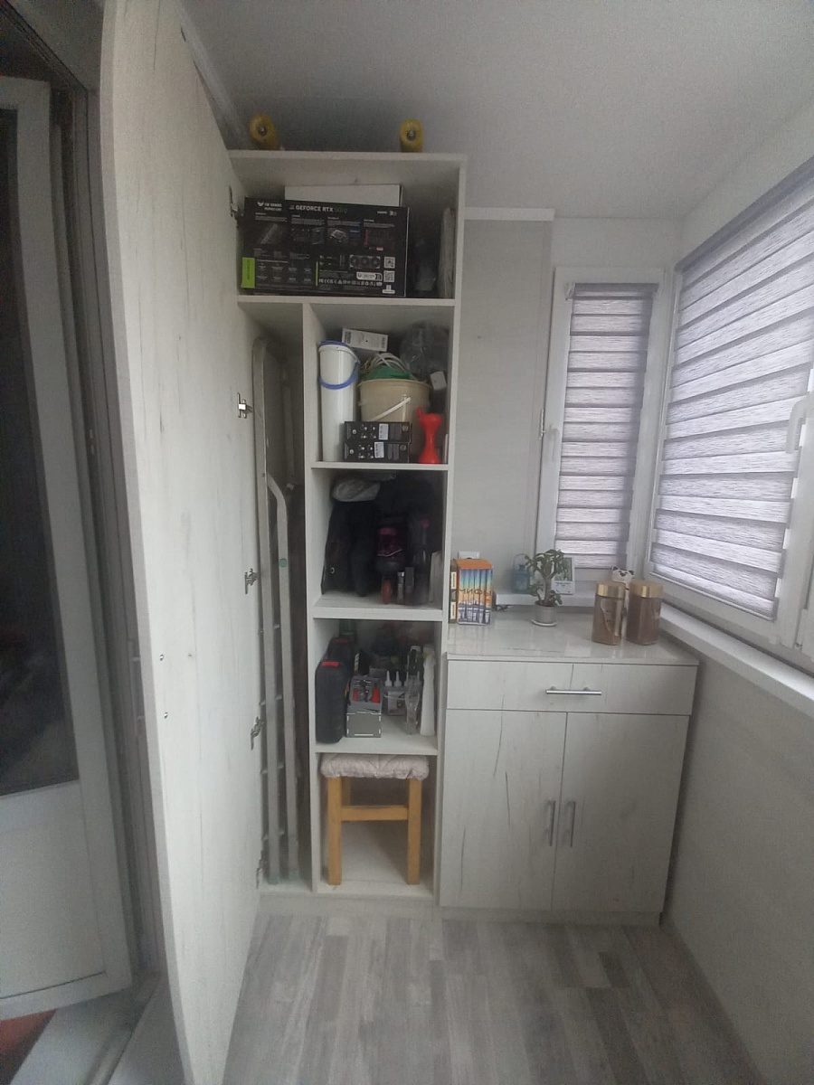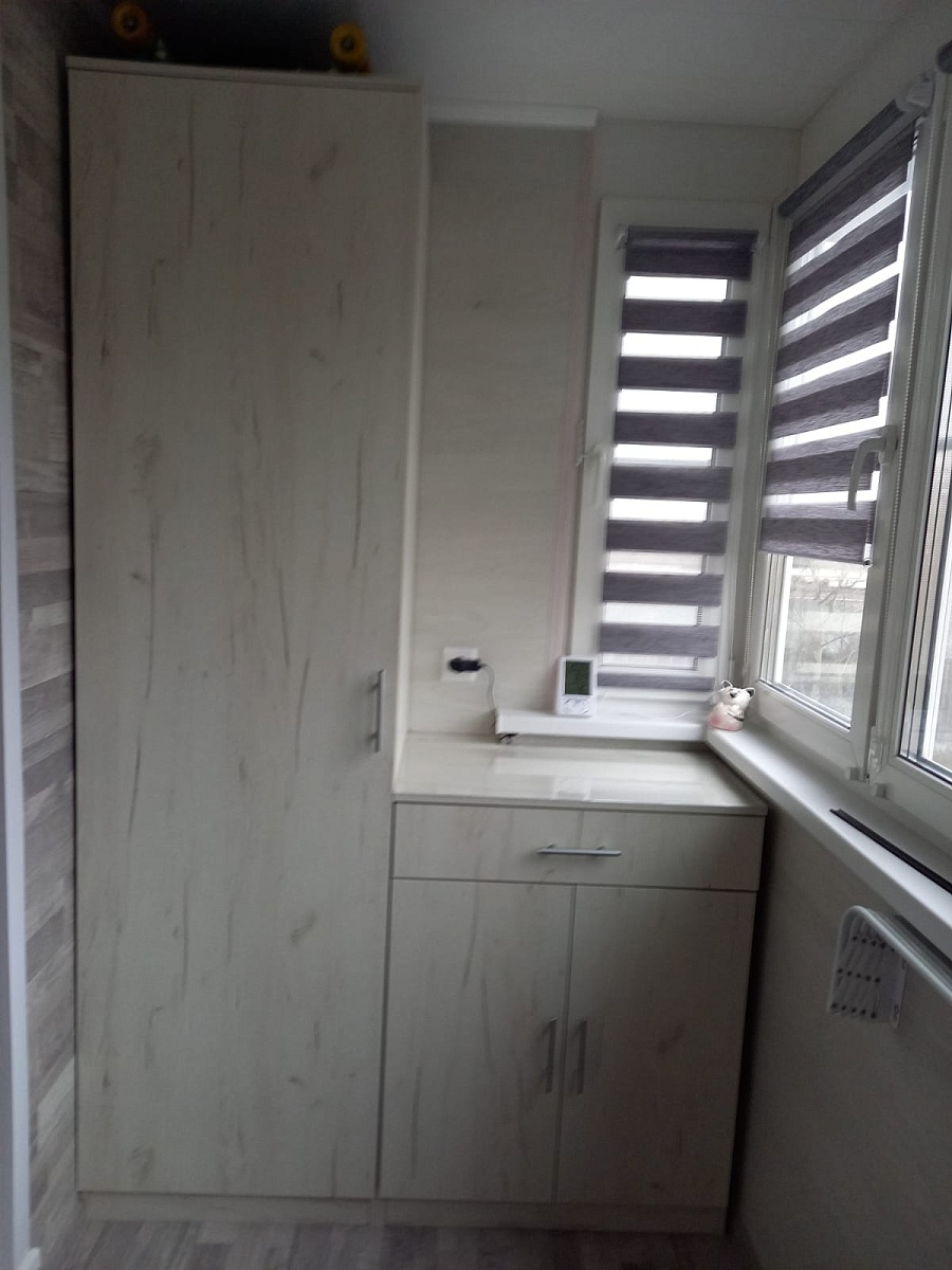 Изготовлена тумба к шкафу по индивидуальному эскизу на балкон. Заказ 194071. Тумба с выпиленным углом. Встала идеально. Альтернатива встроенной мебели.