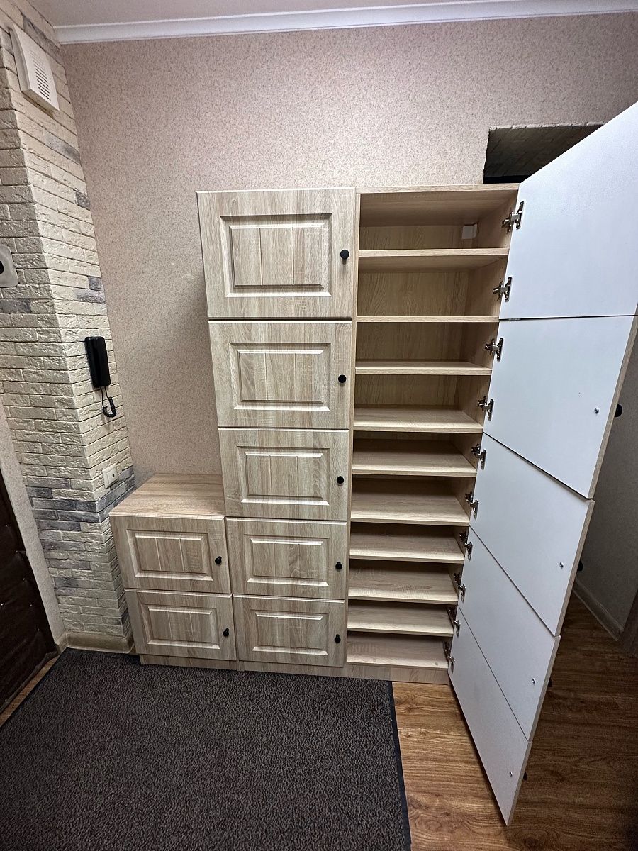 Выражаю огромнейшую благодарность BestMebel за данную обувницу. Очень долго искали и не могли найти подходящую, в которую можно было бы уместить вообще всю обувь целой семьи. Как обычно радуют возможностью выбора цвета и размеров, а также учитывают все пожелания клиента. Так, в моем заказе сделали крепление к стене, регулировку полок по высоте, скок под плинтус, и даже сделали дополнительную тумбу для обуви в идентичном дизайне. Оставшуюся мебель для прихожей также заказал здесь.