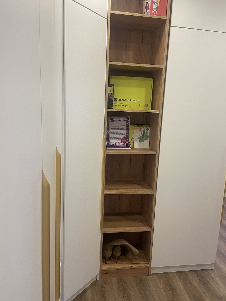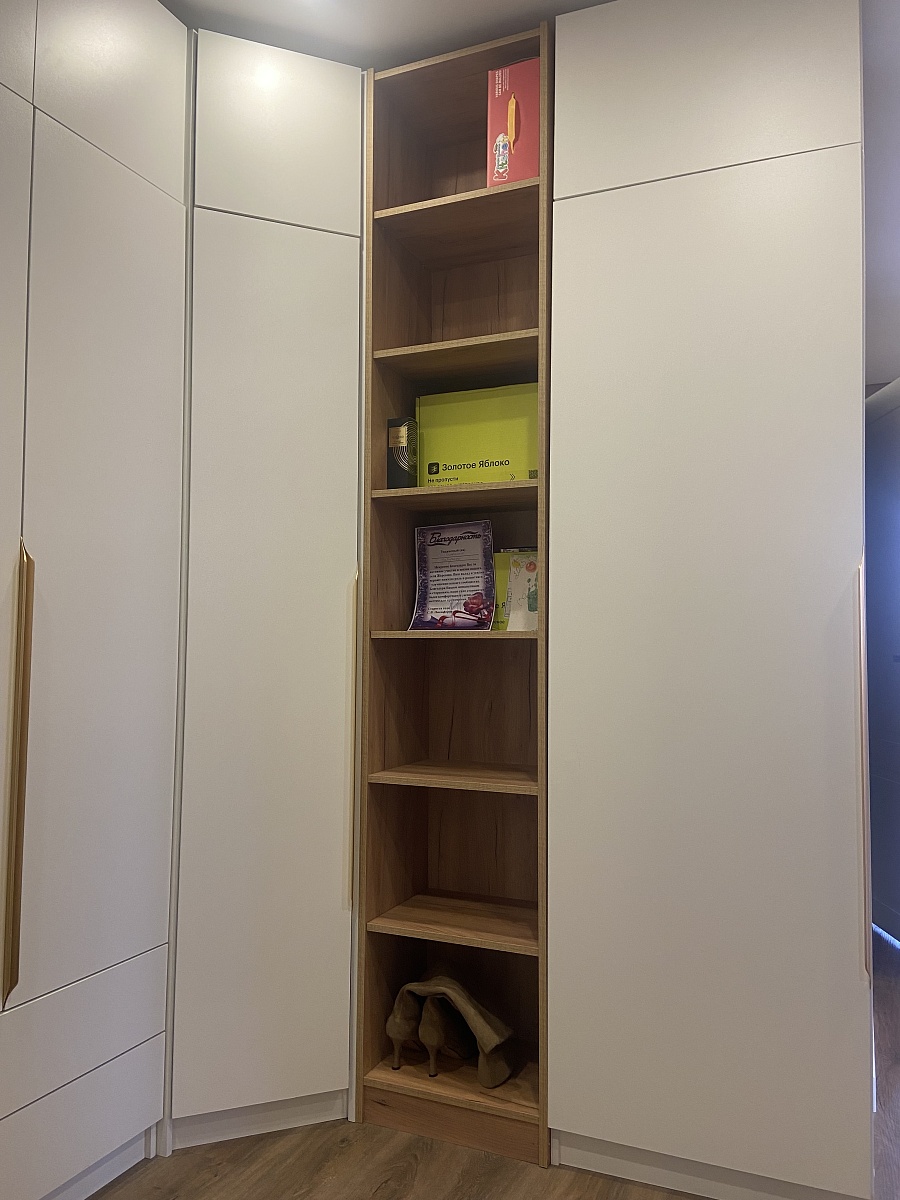 Заказывала шкаф купе по подобию этой гардеробной, в другом цвете и немного изменены внутренности. Шкаф классный, небольшие нюансы- если у вас вдруг кривой пол как у нас (на ширине шкафа в 3,6 это сильно заметно), то задние стенки ровно не встанут в пазы) нужно имитировать ровный пол и тем самым ровно закрепятся стенки. А также не было каких то необходимых отверстий в боковых стенках, пришлось самим. А так в целом все хорошо.