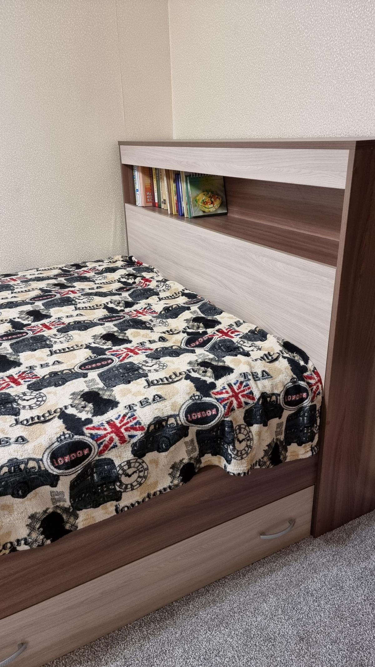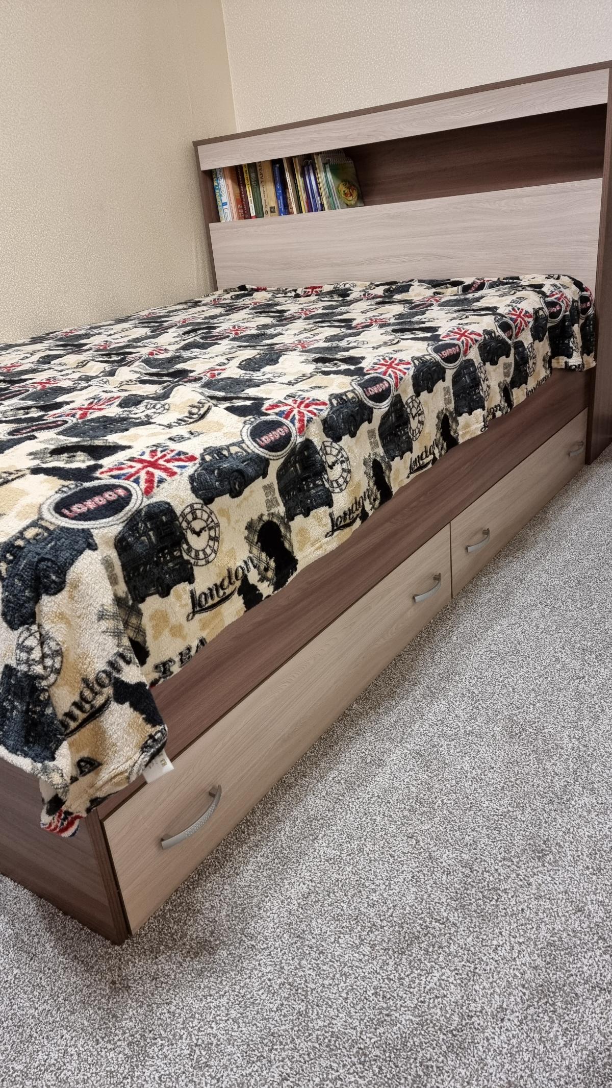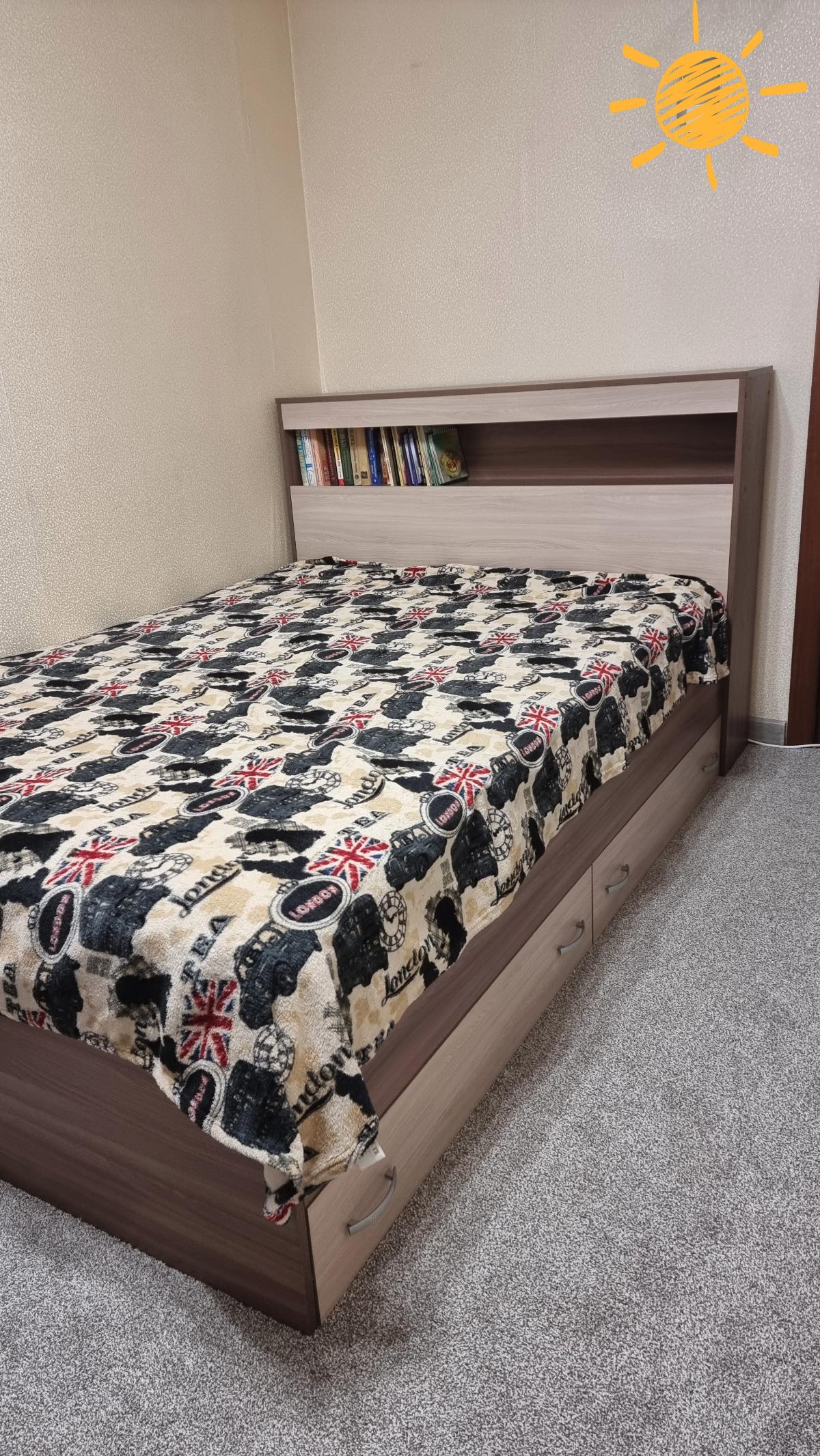 Очень крутая кровать, я в восторге! Лучше чем ожидала, очень тяжелая получилась и устойчивая. Полка просто супер! Ящик который внутри шикарный! Он во всю высоту, а это дополнительная ниша, от которой вы будете в восторге. Выдвижные ящики на колесиках, не обратила на это внимания при заказе. Один большой минус кровать собирали очень долго и нудно. Инструкция не понятна вообще. Собирали сами просто по фото из заказа. Заказывайте сборку, экономьте время и нервы)