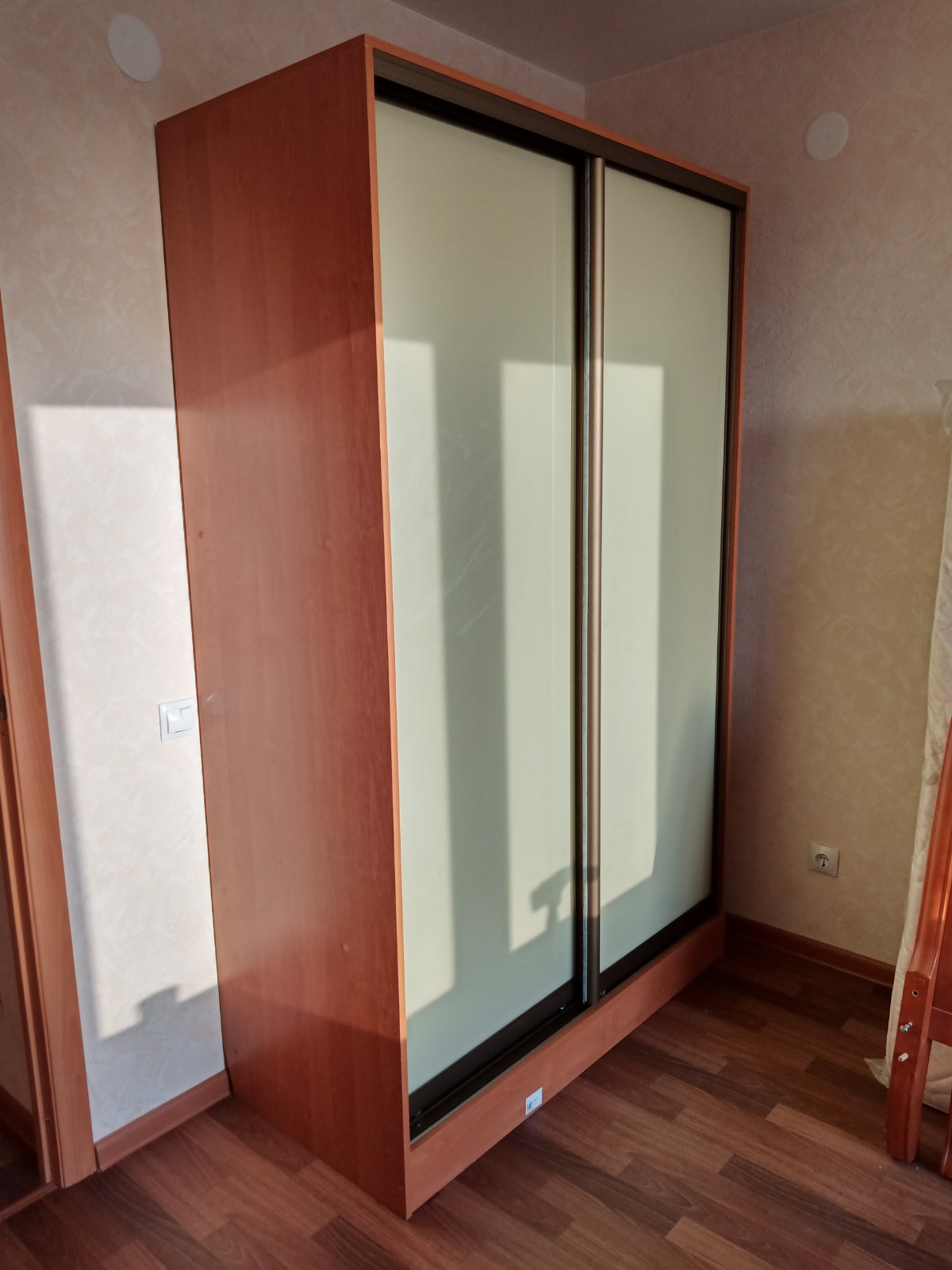 Очень удобно, что в этом магазине можно заказать шкаф нужного цвета. У нас мебель в спальне из 2000-х с "модным" тогда цветом и сейчас найти такой цвет в других магазинах - проблема. Везде шимо да дуб сонома. А устраивать ералаш цветов или менять всю мебель в комнате не хотелось. Заказали шкаф:Шкаф купе EL-06 BMSКомпоновка шкафа: Белье - Платье (2)Ширина: 1300Высота: 2100Глубина: 600Цвет корпуса: Ольха ГорскаяЦвет плёнки Oracle: Бежевый 082Тип кромки: Кромка 0,4ммВыпил под плинтус: 12x3 смКрепёж: Стандартный крепёжЗадняя стенка: Стандарт ДВПЦвет кромки корпуса: Ольха ГорскаяЦена: 16 576 р.Заказ изготовили и доставили за 10 дней. Все комплектующие, стенки, стекла прибыли без повреждений. Собрали шкаф с мужем сами по инструкции, которая выложена  здесь на сайте.  Шкаф нас устраивает. Магазину спасибо за хорошую работу.