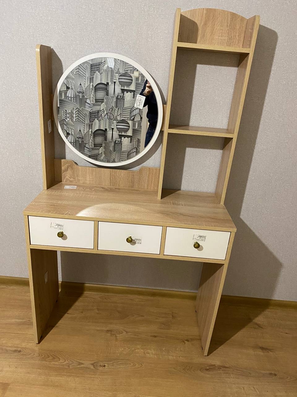 Осень долго искали столик с круглым зеркалом и по нормальной цене!И вот наконец свершилосьСтолик отличный...компактный, современныйПри всей своей компактности вместительный и эргономичный Небольшой минус все же есть: ощущается некая шаткость верхней части столика, но мы это исправили лишним крепежомВ остальном же наилучший вариант в соотношении цена/качество!Спасибо огромное Доставка своевременнаяМониторинг заказа простПо этому выражаем благодарность и будем советовать ваш магазин