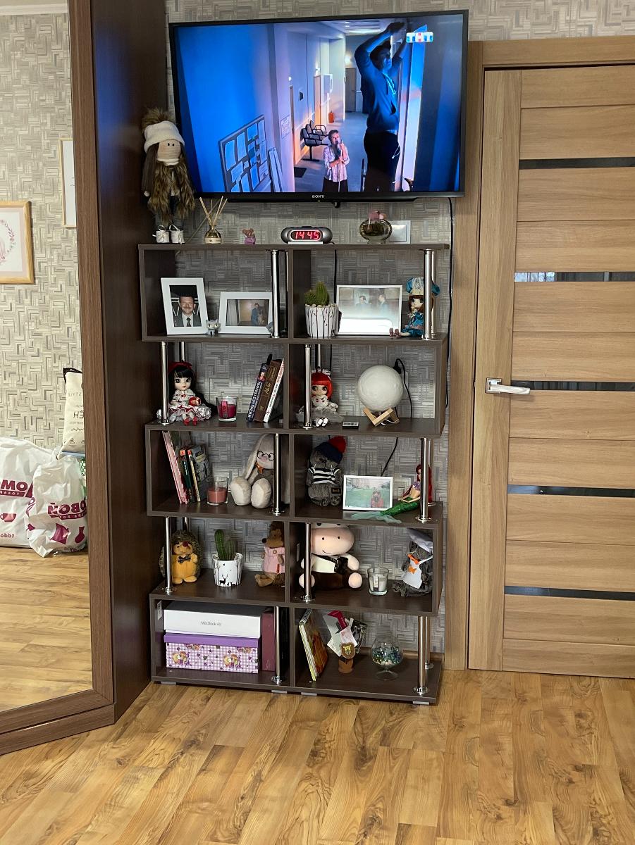 Приобрели данный стеллаж в апреле 2021 года, (N Заказа 00000640233), чтоб отделить зону кухни от гостиной. Собрали очень быстро, вся фурнитура была в сборе, даже пару штук в запас. На полочках уже отверстия намечены, самое главное правильно разложить по схеме, все очень понятно.