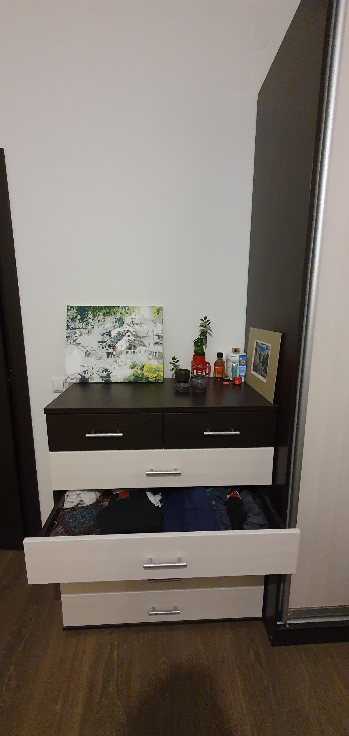 Замечательный шкаф-купе! Сначала хотели купить в Икее, но нам нужен был шкаф 120 см длиной, в Икее таких не было. Потому стали искать модель, чтобы делать с размерами под заказ. Шкаф "Трис" идеально вписался в желаемые габариты (с нахождением его среди миллиарда других нас поздравила даже консультант), и с выбранным дизайном (корпус венге и белый сандал, без зеркала) – замечательно вписался в дзен-буддийский дизайн комнаты! (см.фото)Впервые брали мебель на заказ, очень сомневались, но все вышло выше всяких похвал, честно, мы не ожидали. Шкаф красив, вместителен, а количество и высоту полочек мы выбрали сами, взяв за основу дизайн того самого шкафа из "Икеи". Спасибо большое, шкаф очень порадовал!!!