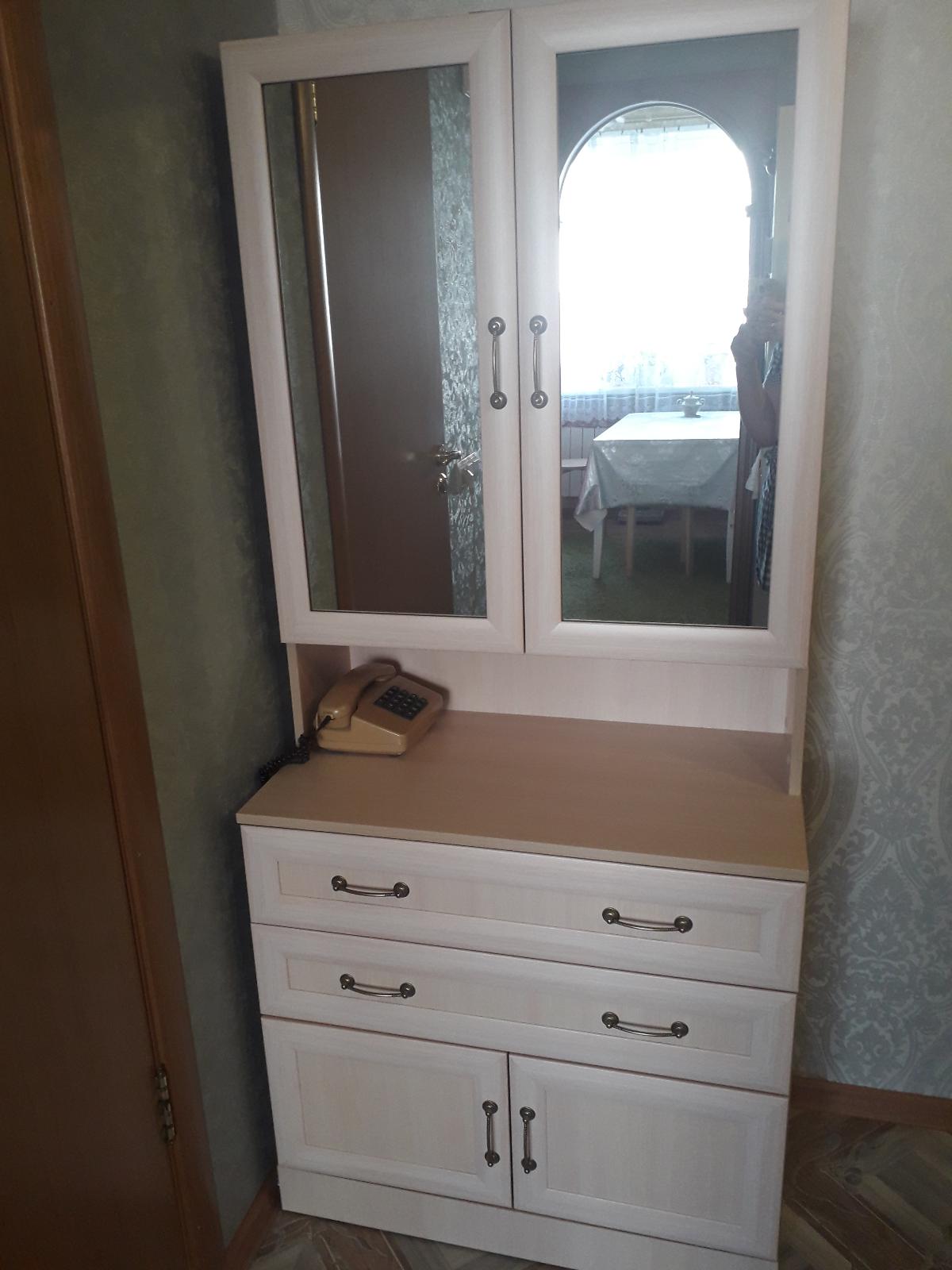 Очень довольна трюмо: удобное, симпатичная модель, ручки отличные, крепкое дно ящиков, ящики выдвигаются полностью, и цена-программа "найди дешевле и сделаем скидку" реально работает!!!!! Спасибо магазину за скидку и быструю доставку- в воскресенье вечером заказала, в понедельник днем мне перезвонили уточнить заказ, а в среду днем уже привезли!!!Теперь о грустном. Ламинат не самый лучший -это и по цене ясно. Задняя стенка в брызгах, но ее не видно. Не доложили много фурнитуры: некомплект стяжек, вместо внутренних петель положили комплект внутренних. Пришлось мужу прогуляться на 300р до ближайшего магазина. Но это вина производителя. Магазину за организационные моменты 5+!