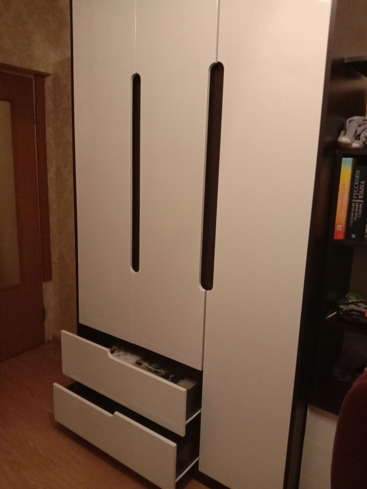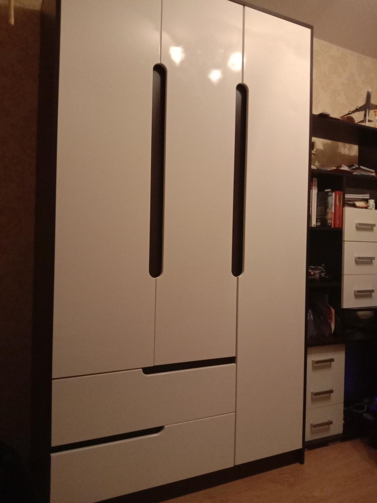 Заказала шкаф в небольшую детскую комнату. Привезли быстро,собрали. Описание полностью соответствует действительности. Цвет фасада шикарный. Очень нарядный, вместительный шкаф. Пользуемся четвертый месяц. Очень довольны.