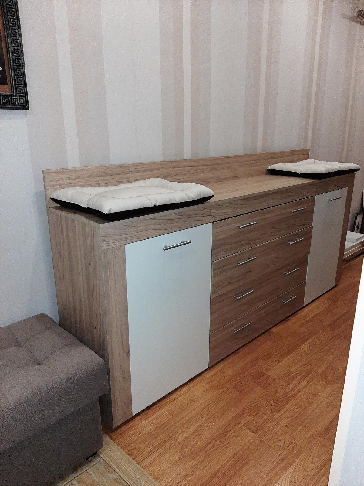 Достоинства:   цена, качествоНедостатки:   нетПокупать не планировали. Увидели на  витрине  (Румянцево). Понравился. И ещё понравилась задняя стенка. Это была как перегородка между мебелью. Заказали. Был приятно удивлен, когда пришёл комод и планка дополнительная,! была уже с засверленными отверстиями. Комод хороший, качество материала, как у других производителей. Но цена совершенно другая. Со сборкой проблем не было. Немного посидели над схемкой, но так как все детали пронумерованы, то особого труда это не составило. А. Заказ выполнен вовремя, без задержек. Забирали самовывозом. Так что, всё устроило.  Всё на высоте.