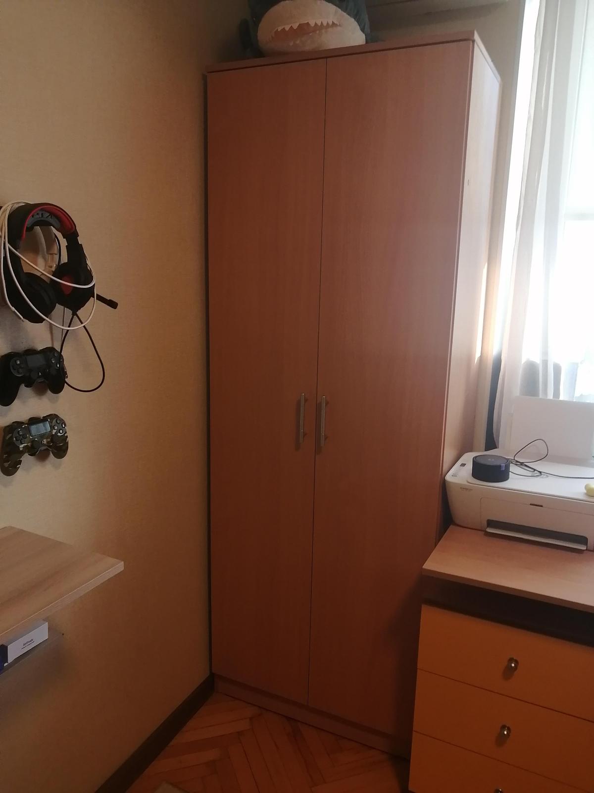 Искали сыну в комнату компактный ,но функциональный шкаф. Основное требование было -размеры ,т.к. необходимо было поставить в определенное место. Данный шкаф подошел по всем параметрам. Прекрасное наполнение ,очень важно ,что половина шкафа полочное пространство ,вторая половина для вешалок . Качество исполнения на высоте ,заказывали петли с доводчиком ,разница в цене не значительно ,но удобство того стоит, дверцы не хлопают ,а очень плавно и тихо закрываются .Ручки выполнены очень качественно ,форма удобная . Шкаф подбирался по цвету к основной детской мебели в комнате сына ,очень переживала ,что не подойдет по цвету ,но! идеальная цветопередача ! шкаф вписался как родной) . Сам процесс с момента приемки заказа и доставки составил 2 недели ,доставка в удобный день и время ,заранее позвонили доставщики ,согласовали время ,не надо сидеть и ждать целый день. Да ,что не маловажно-инструкция по сборке настолько проста и удобна ,что собрать может даже ребенок ) . Очень рекомендую данный магазин для покупки мебели. Мы уже вернулись за покупкой стола )