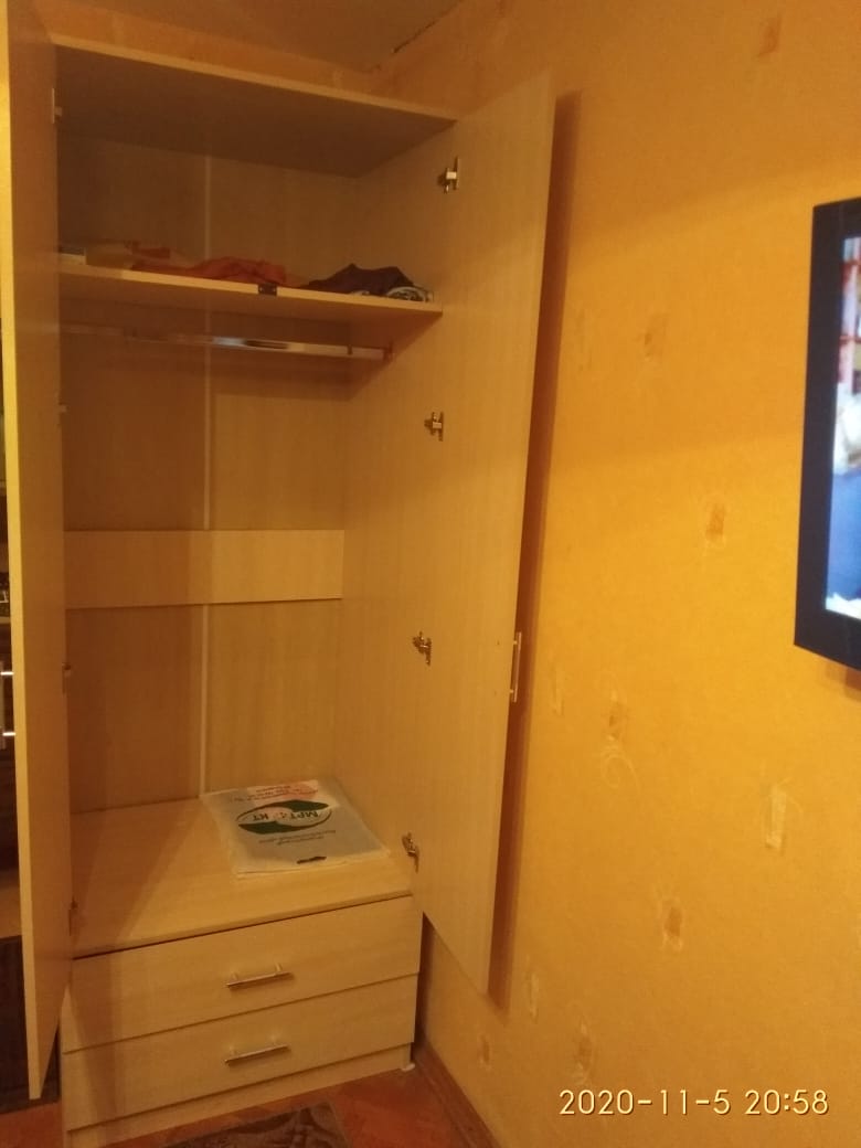 Хороший шкаф, правда при сборке треснуло зеркало, пришлось его снимать и самостоятельно обрезать(было целиковое, разрезали на 2 части)