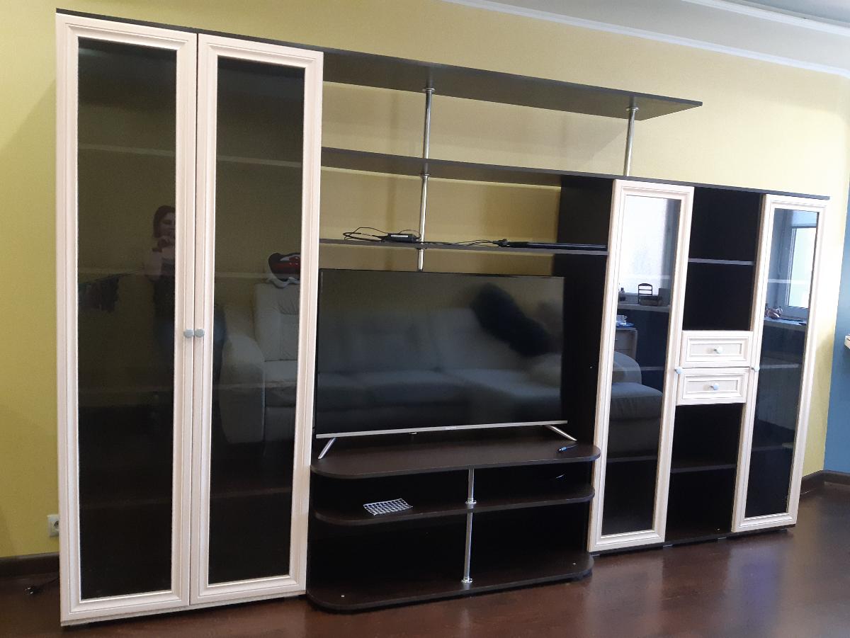 Заказала стенку Макарена BMS (заказ 00000338609 от 10.01.2020) в январе 2020 г. и вот решилась написать свой отзыв. На самом деле стенка современная, практичная и самая дешёвая из того что я смогла перерыть в интернете. Очень удобно что на сайте BestMebelShop я заказала эту стенку с удобной для моей квартиры высотой 2300 и глубиной 50 см. У нас в квартире посередине стены спрятана труба с отоплением (батарея), которая выходит наружу сверху из потолка и снизу из пола. Поэтому пришлось искать такую модель стенки, где можно сделать вырез на задней планке внизу, так чтобы спрятать трубу, ну и высоту стенки подобрали так чтобы ни с какого ракурса трубы из потолка не было видно.Выбрала классическую черно-белую расцветку стенки, на мой взгляд стильно и современно. Есть два шкафа, они выглядят достаточно компактно, но очень вместительные, один с полками, другой со штангой и двуми полками сверху и снизу. Над телевизором полки со стеклянными дверками. По бокам есть открытые полки и полки с дверками. Внизу под телевизором два больших выдвижных отделения, а по бокам две дверки с полками. В целом в неё убирается очень много вещей, да и выглядит очень красиво. Муж собирал сам, пришлось конечно попыхтеть, но оно того стоило.Рядом со стенкой поставили шкаф Комфорт 6 BMS с этого же сайта, с такой же расцветкой и фурнитурой. По моему получилось очень даже не плохо. На BestMebelShop заказываю не впервые, поскольку очень довольна ценой и качеством. Один минус всё же есть - на всех деталях мебели на лицевой стороне приклеены заводские наклейки, они очень тяжело снимаются. Проблему решила с помощью фена и жидкости для снятия лака. Мне моя стенка очень нравится, нисколько не пожалела о покупке. Если вам Макарена BMS приглянулась берите и не думайте, не пожалеете!