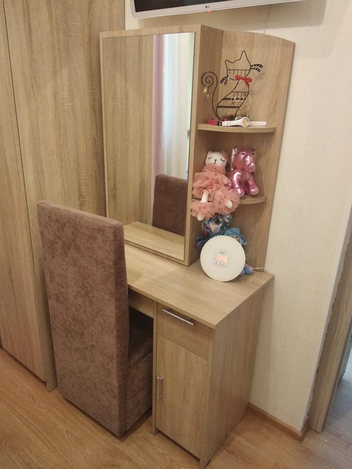 Здравствуйте! Заказала эту модель более 3 месяцев назад. Собрали легко и быстро. Столик маленький, но очень вместительный: два выдвижных ящика, открытые и закрытые полочки внизу и за зеркалом. Я очень довольна покупкой. Рекомендую!