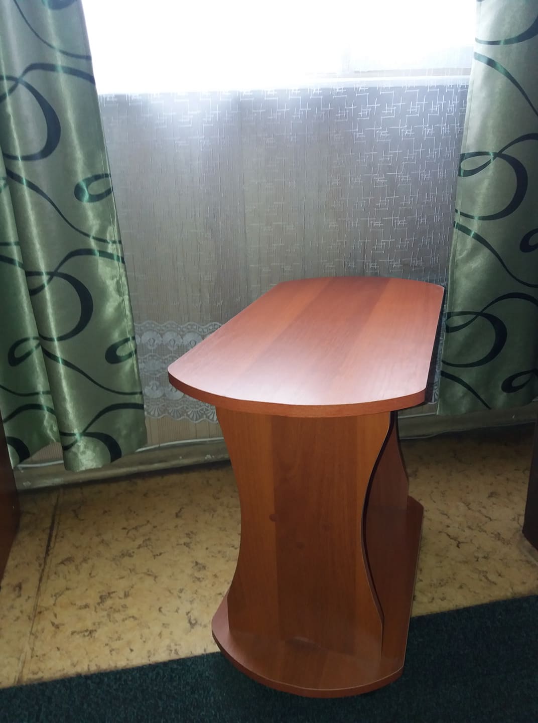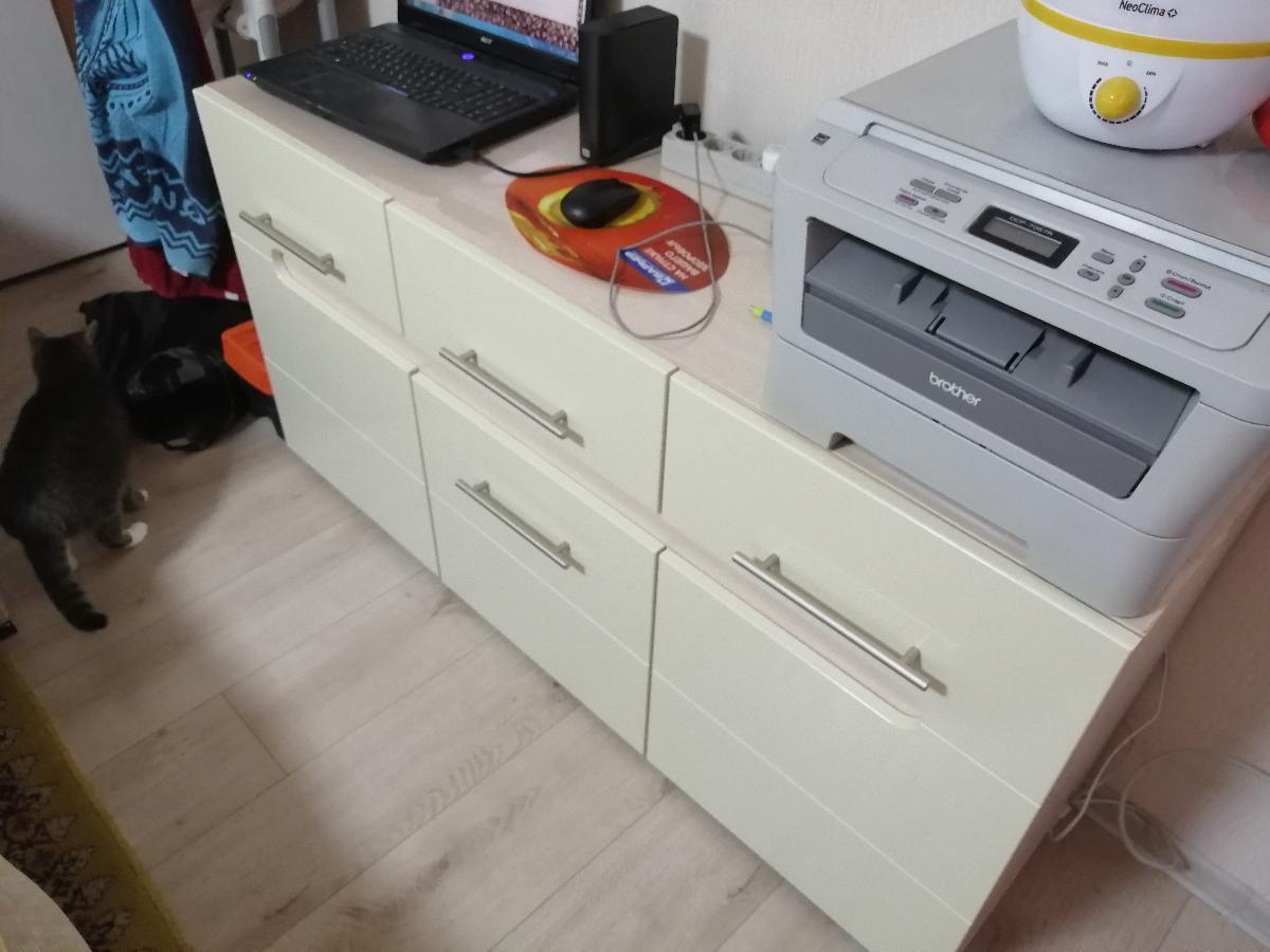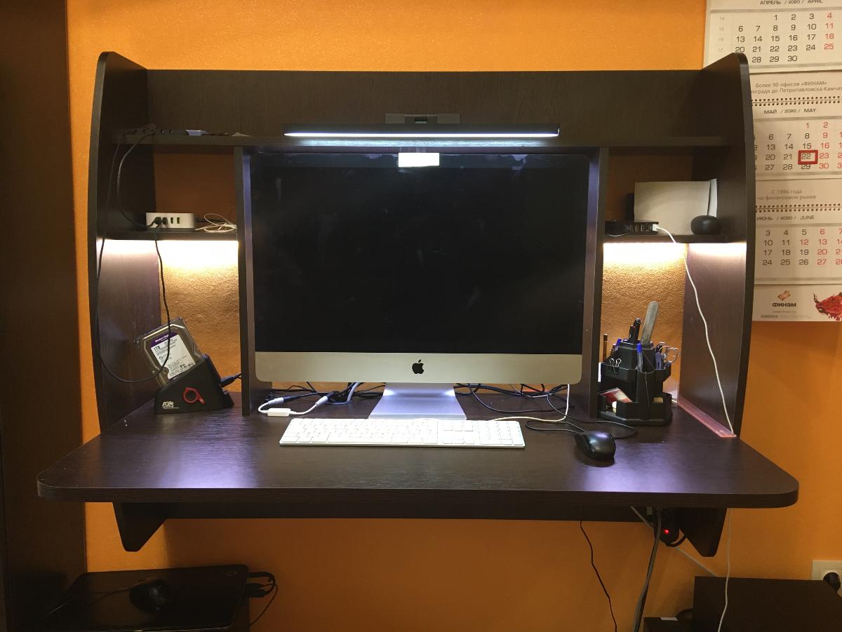 Стол для ПК выбирал долго. Понравилась вариабельность данного заказа по размерам и цвету, удобство, эргономика. Отличный доступ к системному блоку ПК. На столе отлично разместились монитор 24" , ТВ 15", Принтер-сканер-копир НР. Отказался в заказе от выдвижной полки для клавиатуры, стеклянной дверцы на полке и полки для компакт-дисков ( к сожалению на цену заказа это не повлияло...) Собрали самостоятельно, вдвоём за 8 часов. На полках отлично разместились звуковые колонки и усилитель ПК, папки и разные мелочи. Изготовили и привезли удивительно быстро (за неделю)Недостатки: 1. Оплата только наличными; 2. В столешнице в углу желательно делать стандартное отверстие с крышкой для пропуска соединительных проводов ПК, монитора, принтера; 3. Ножки стола на 10-15 мм больше или варианты высоты в заказе ( При высоких плинтусах стол не плотно примыкает к стене) 4. Торцовочная лента столешницы  во "впуклости" из за температурных напряжений через 2 недели начала отклеиваться...Пришлось подклеивать и фиксировать саморезом с пресс-шайбой. На функциональные возможности это не повлияло, но осадочек остался.