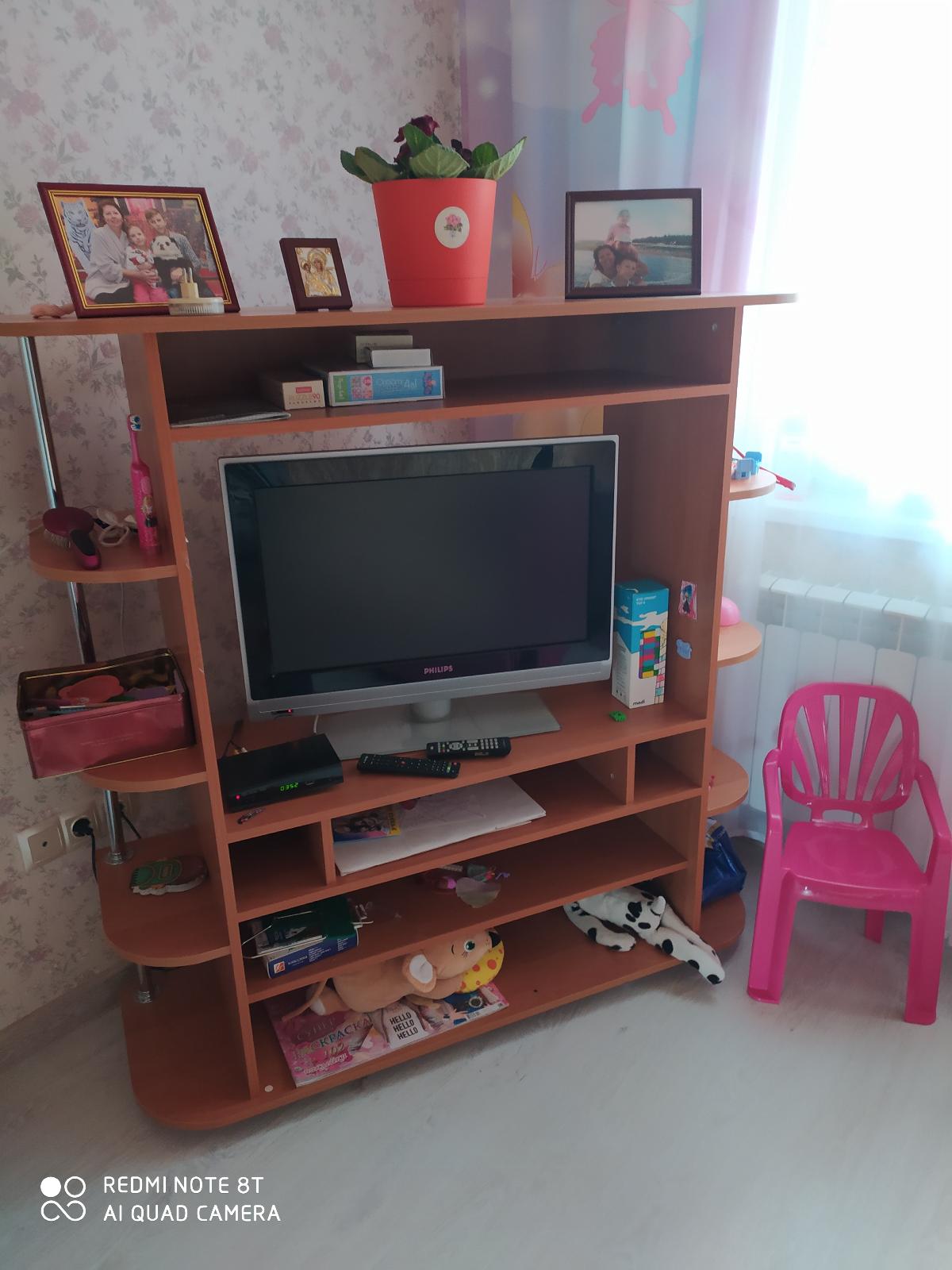 Очень хорошее тумба под телевизор, с множеством маленьких полочек для милых мелочей, отлично вписалась в интерьер