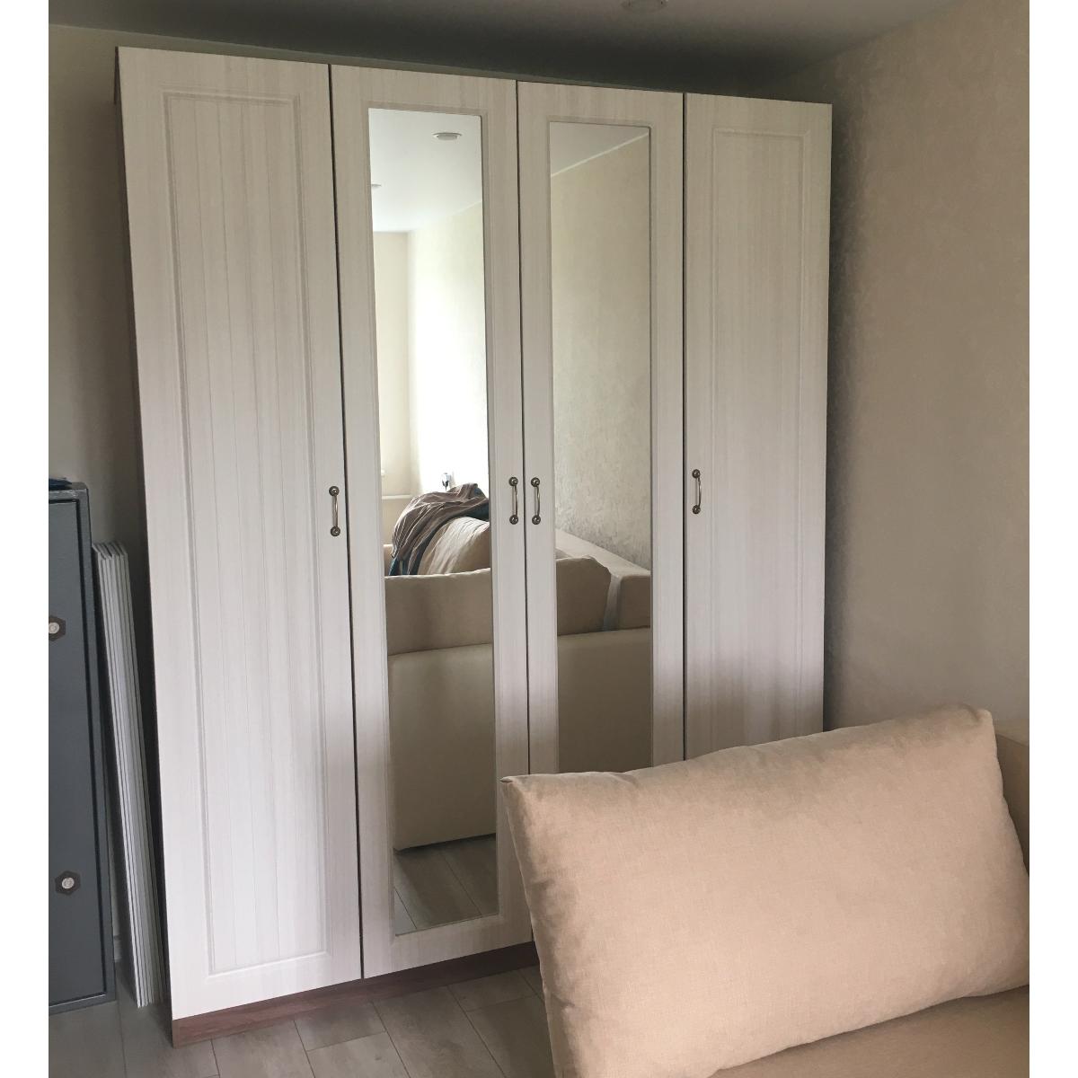 Делали ремонт и параллельно искали шкафы в квартиру. В итоге остановили свой взгляд на Бестмебельшоп, выбрали шкафы средней ценовой категории из коллекции "Прага". Подкупила возможность изготовления любого размера и цвета. В коридоре у нас узкая ниша, всего 30 см. Заказали на заказ длинный четырехстворчатый шкаф приятного цвета дуб 200*30, полки и каркас белого цвета. В одном отсеке полки, в другом 4 выдвижные штанги снизу и сверху. Шкаф очень подошел в коридор, смотрится стильно.В спальню заказали шкаф из этой же серии белого цвета, каркас темный. В середине установили 2 штанги, внизу и вверху, чтобы все поместилось. По бокам сделали полки. Шкафы собирали сами, очень долго, так как нет опыта. В целом, шкафы очень гармонично вписались в интерьер. Из минусов: Зачем вы клеите эти ужасные наклейки, особенно в шкафу их столько много, что агрессия возрастала с каждой минутой.Могу отметить, что очень сильный запах, пришлось на время переехать в другую квартиру, только в течении недели шкафы выветрились более-менее и можно было спать, до этого, я не смогла заснуть, задыхалась. Третий минус в оформлении внутренней части дверей, где зеркала. Жутко зеленого цвета. До этого брали шкафы другого производителя, створки были в цвет фасада.В целом, за 40000 руб. получить 2 шкафа и в подарок компьютерный стол - не плохо. Конечно можно было еще дешевле найти и купить, но как-то боязно брать мебель за 7000 рублей.