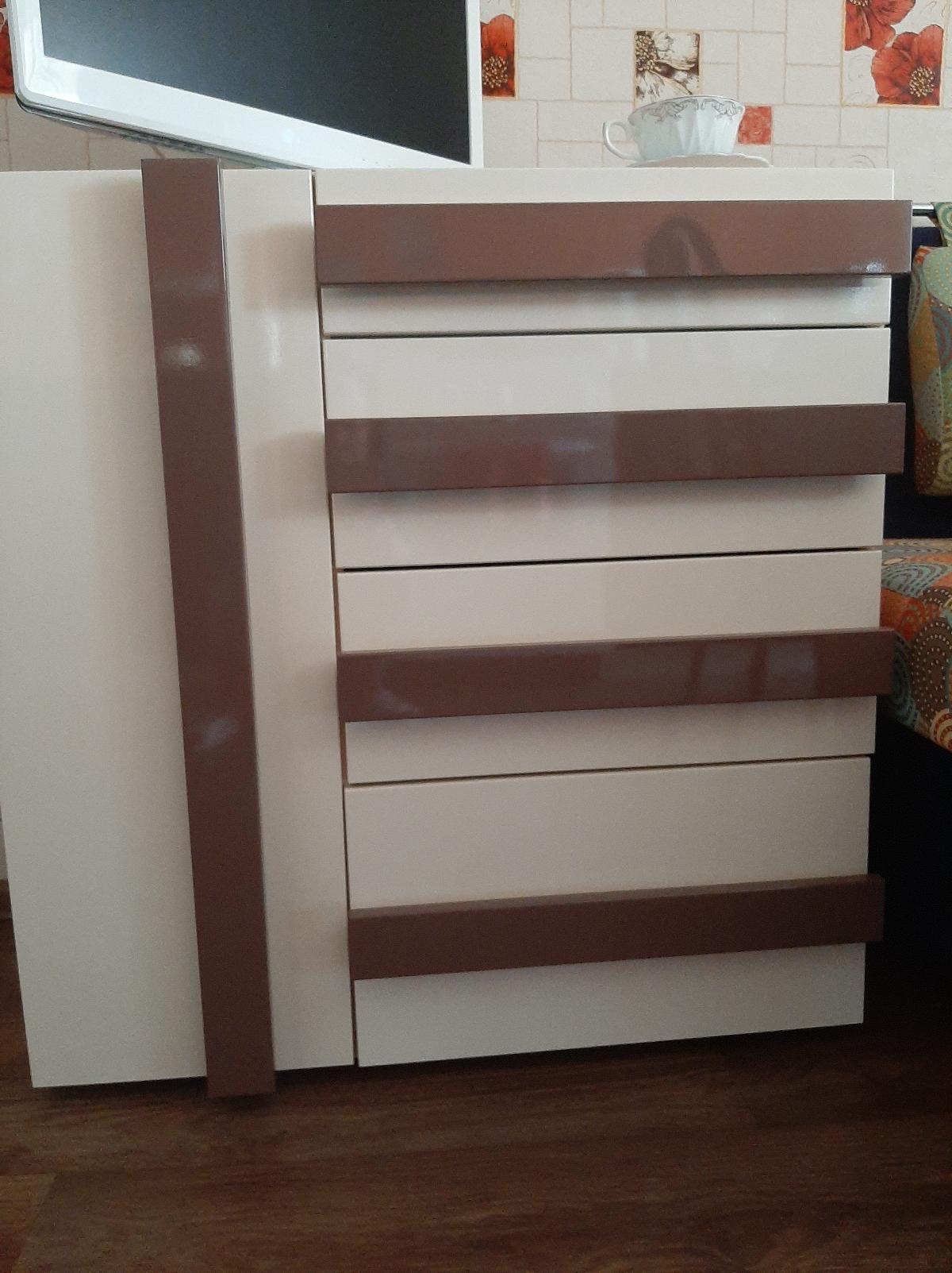 Тумбой доволен!Покупалась и другая корпусная мебель в этом магазине, поэтому вновь обратились сюда.Сразу скажу тем кто будет покупать мебель: Не экономьте на кромках!!!! Цены и так не большие, до этого брали компьютерные столы детям, об эти кромки (0,4 мм) можно убиться. В этой тумбе заказали кромку (2мм) - прям хорошо! (На детские столы пришлось из леруа наклеивать пластиковую полоску)Ручки дешевые, но об этом и так знал перед покупкой. и знал что буду покупать другие, такие же как на другой мебели. цена вопроса 100-200рК минусам могу отнести петли 90 градусов, были бы 180 - было бы лучше. Дети думаю вырвут их когда нибудь открывая дверки. Время покажет, пока стоят нормально.