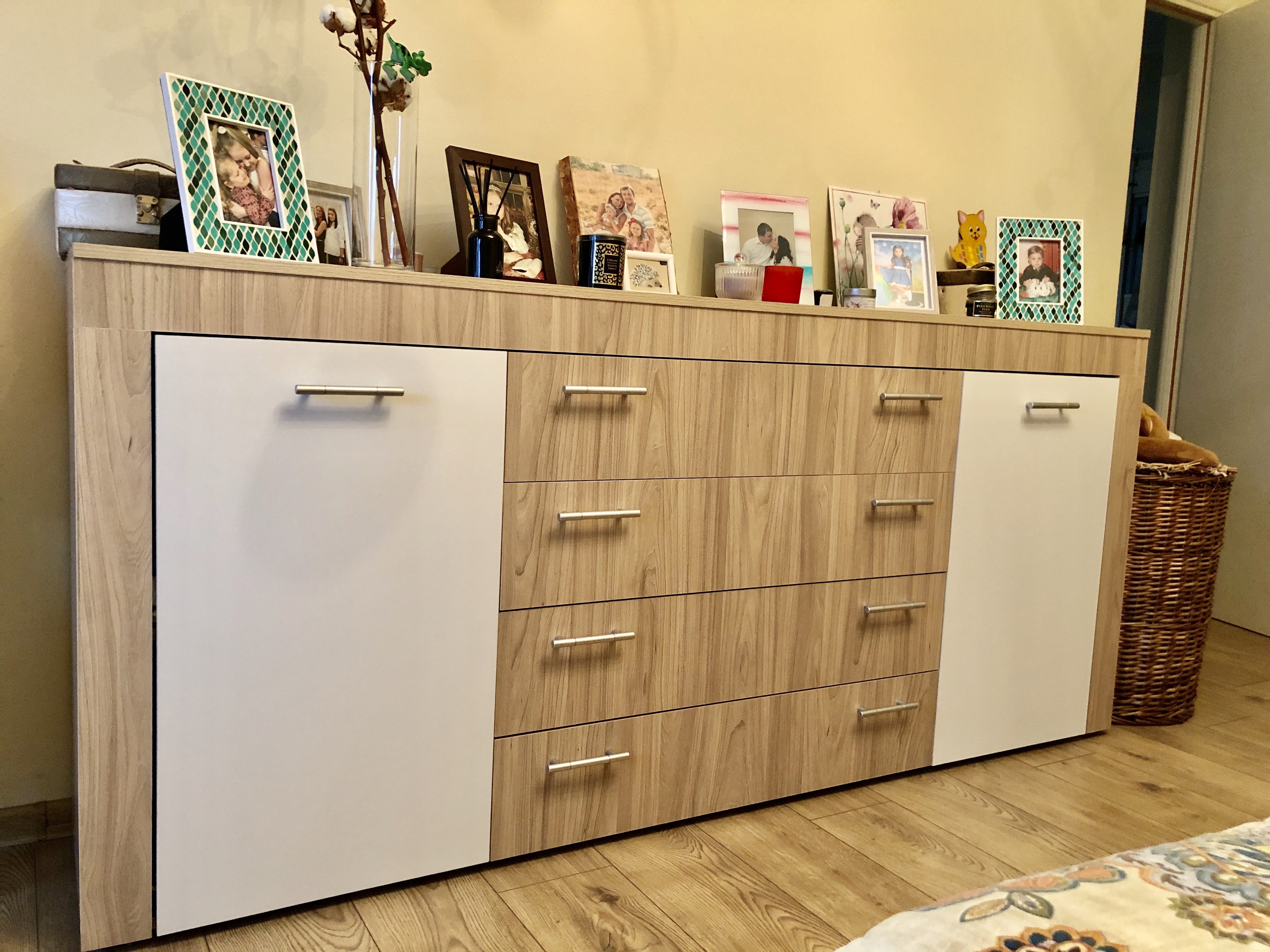 Комод отличный! Очень вместительный. И великолепно вписался в интерьер комнаты.Доказывала в него комплектующие, чтобы лучше задвигались ящики. О чем ни капельки не пожалела! Ящики достаточно длинные получились (заказывала длину комода 2 м) , и на обычных креплениях начались бы сложности...Сборщик был великолепный! Достаточно быстро собрал его, все показал и рассказал, чтобы комод прослужил дольше.Покупкой очень довольна! Рекомендую.Впредь буду еще заказывать здесь мебель.