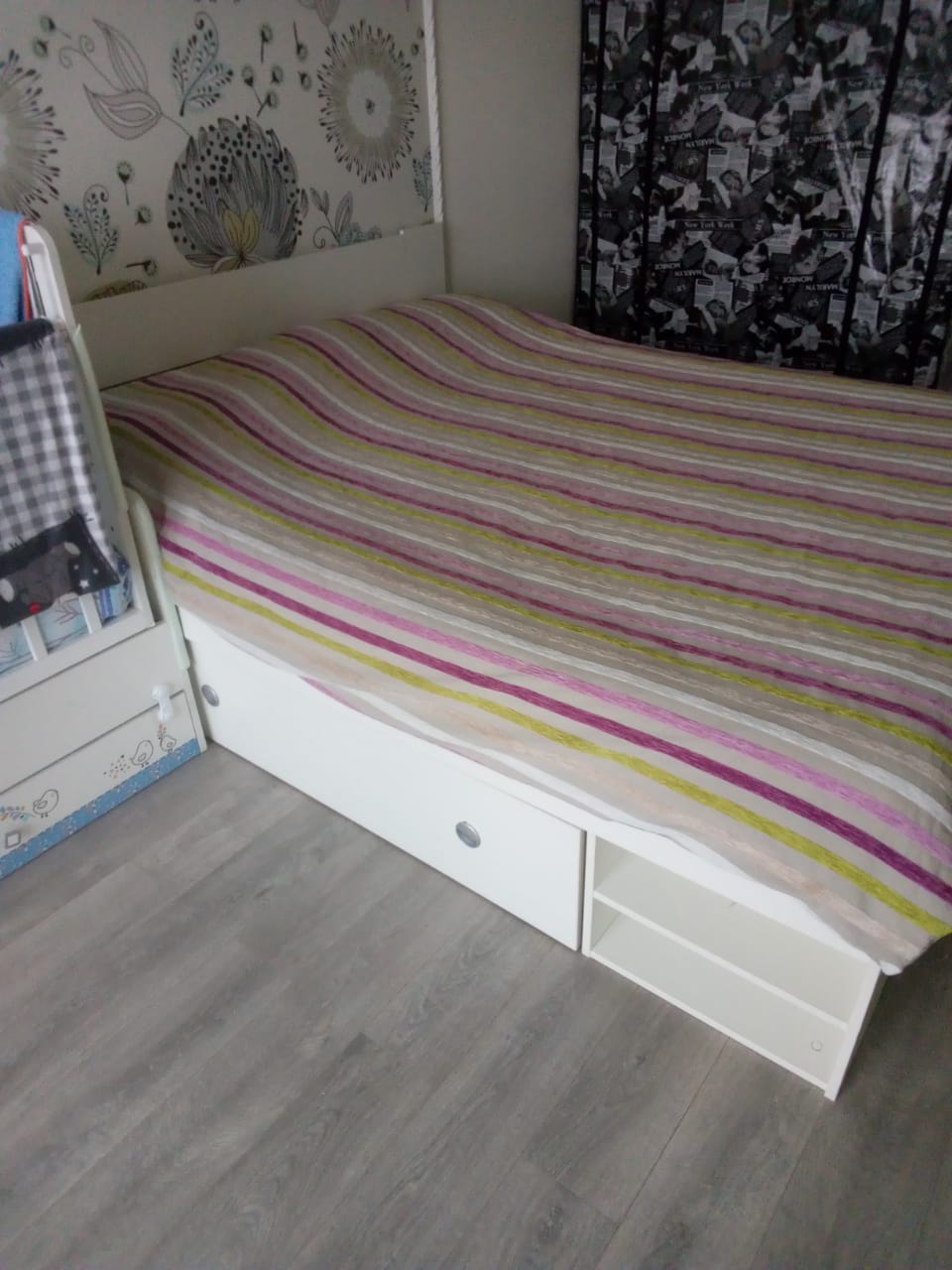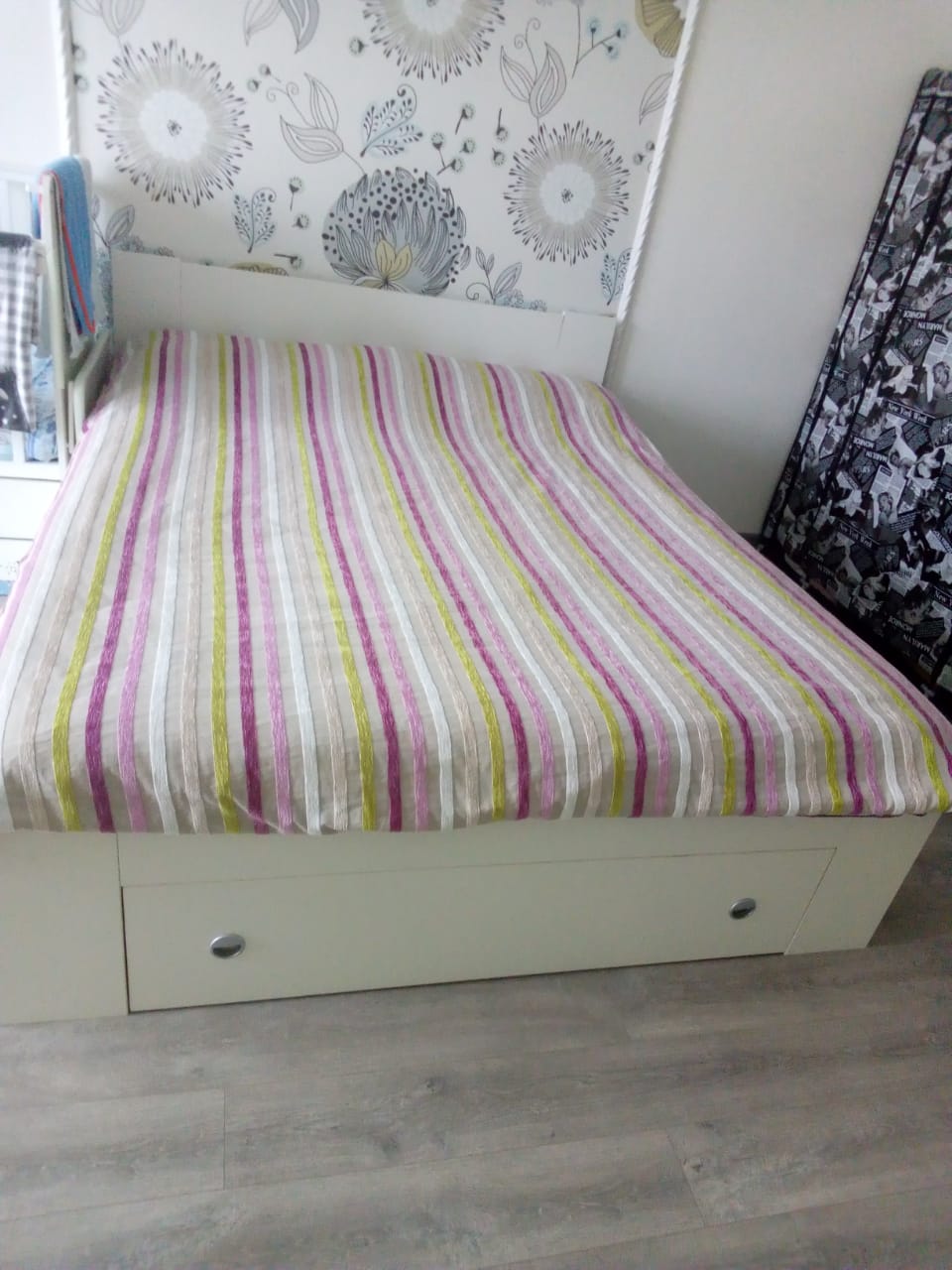 Кровать превзошла все ожидания. Стильная, практичная. Ящики очень большие и  вместительные. Заменяют шкаф. Плюс выдвигающиеся прикроватные тумбочки. Всем рекомендую. Покупкой довольна.