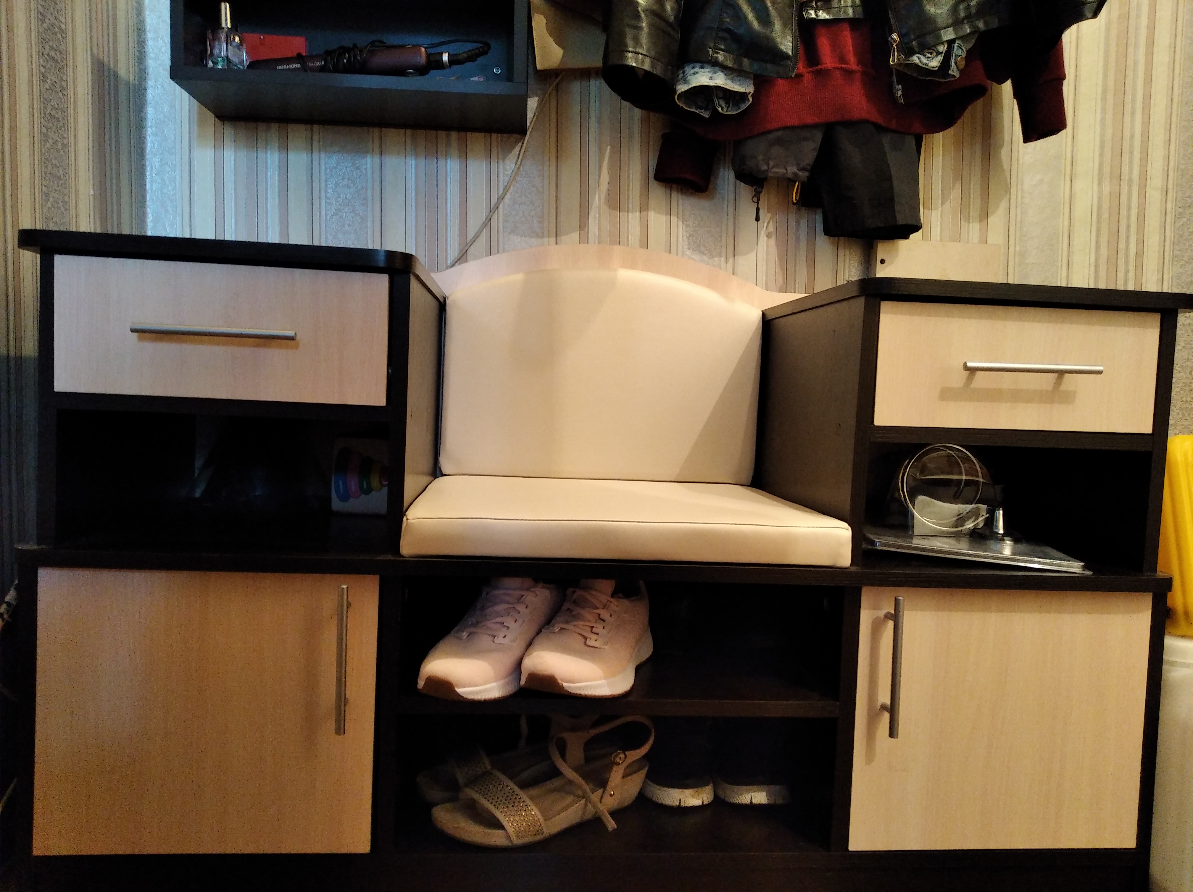 В наш узкий коридор было невозможно что-то подобрать. Оставался вариант просто повесить на стену крючки для одежды. Однако после долгих поисков нашли прихожую Александрия 4 BMS (глубина 24 см), которую произвели для нас по индивидуальным параметрам. Качество очень обрадовало, брака не было. При сборке все детали и отверстия аккуратно подходили друг к другу – мы ожидали, что будет хуже. За такую стоимость прихожую с необходимыми нам размерами у других производителей мы найти не смогли.