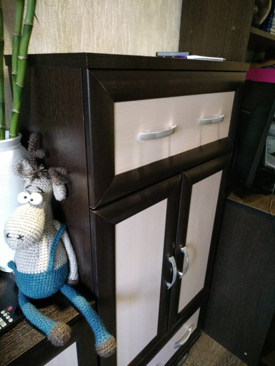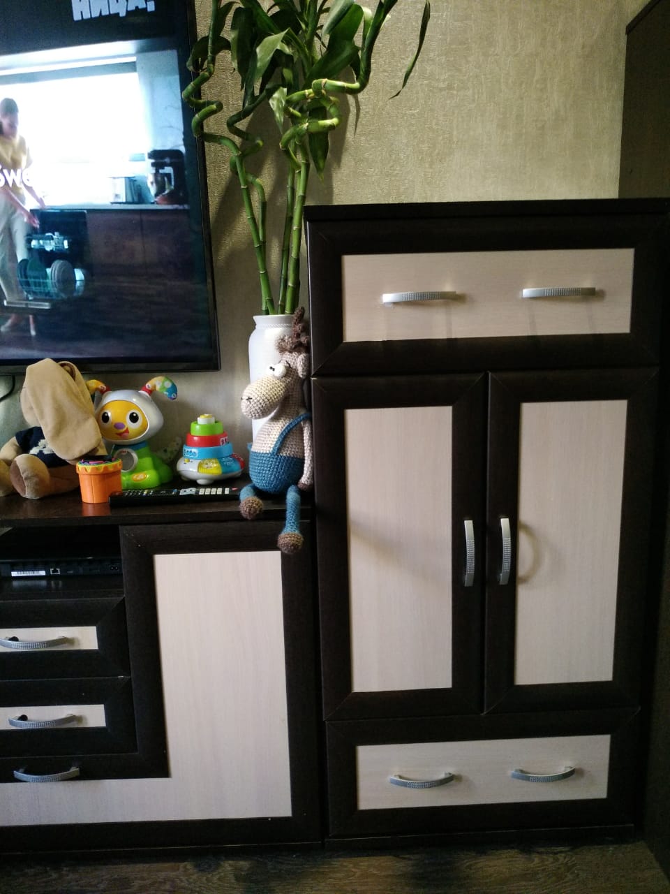 После переезда возникла необходимость разместить тв в сочетании со шкафом из старой квартиры. Тумба ТВ Т-005 подошла отлично. Цвет был выбран яблоня локарно. Привезли через три дня, собирали сами, сложностей никаких не возникло. Качество приятно удивило, цена доступная.