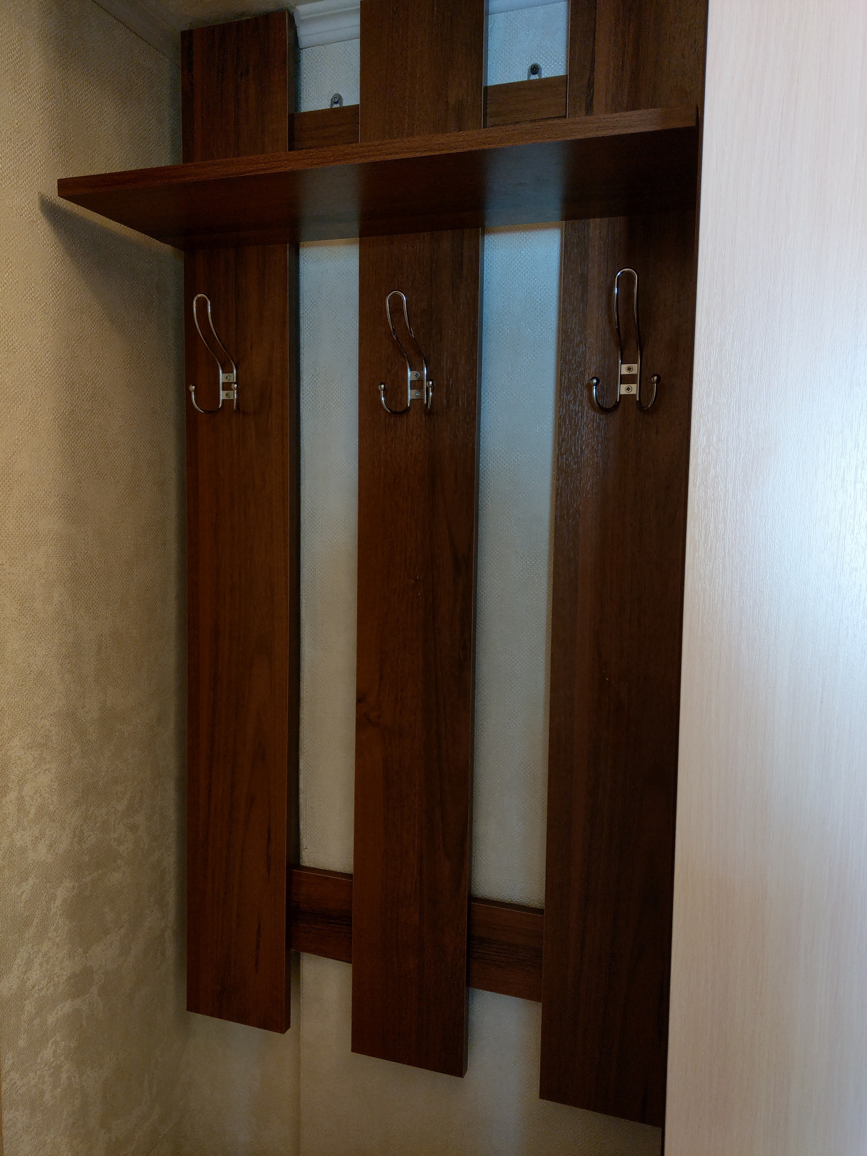 Заказал зеркальное расположение элементов и ширину больше стандарта на 10 см. Прихожая встала в нишу отлично. Так как  цвет орех мария-луиза был в наличии привезли уже через три дня. По доставке вопросов не было, все четко. Собирали сами, были некоторые вопросы, соединили со сборщиками, все объяснили доступно. Прихожая очень функциональная и практичная, цена приемлимая. Внешний вид радует.