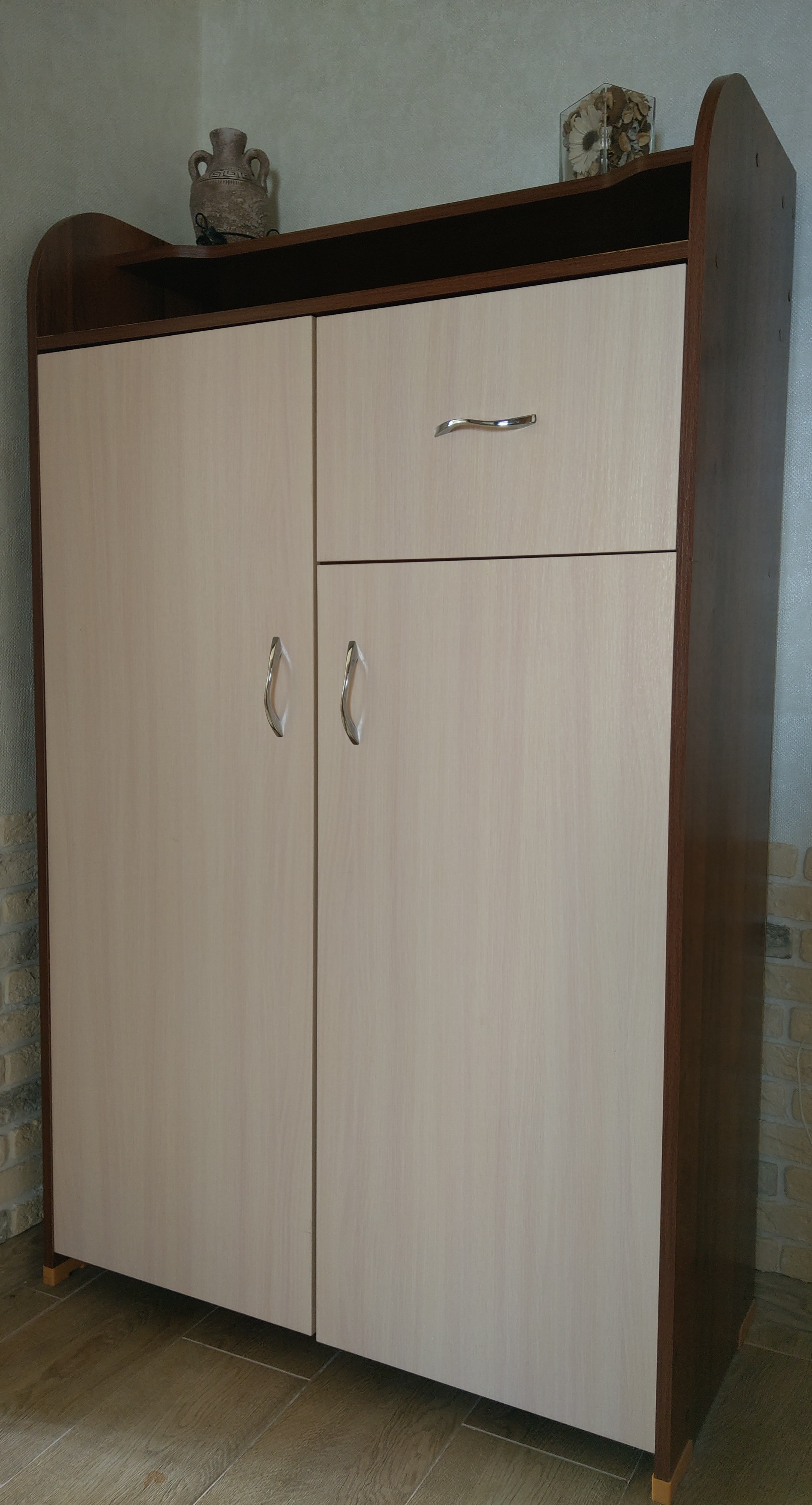 Довольно продолжительное время искал компактный обувной шкаф, на всех сайтах получил отказы - то снят с производства, то габариты и цвет не пдходящего формата.. Нашел обувной шкаф Бона-3 BMS  в Бэст-Мебель. Приятно удивила возможность выбора материала и цвета корпуса, фасада и подгонка размеров, что и выбрал под свой вкус. Доставлен шкаф точно в назначенный срок и время. Шкаф гармонично вписался в небольшую прихожую. Собирал шкаф самостоятельно, простая и понятная сборка, достойное качество. Маленький да удаленький, отлично вписался в прихожую.