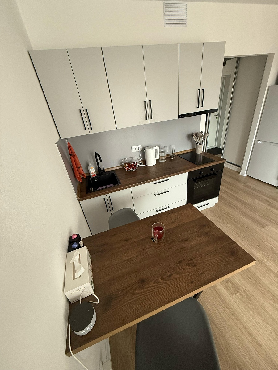 Заказ 00000951829, изделие ЭСКИЗ Кухня Европа В-5 BMS (2000х2170х600).Отличная кухня , в использовании 4 месяца , заказали, потому что у друзей такая же уже 1,5 года и тоже все прекрасно! Нареканий не обнаружено , все в порядке , механизмы не заедают , столешница отличного качества, в дополнении заказали столик.