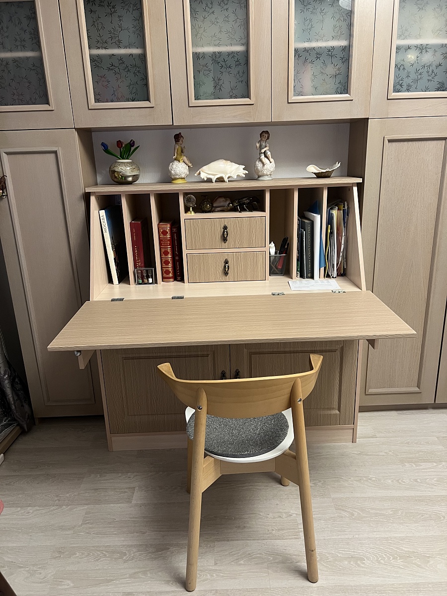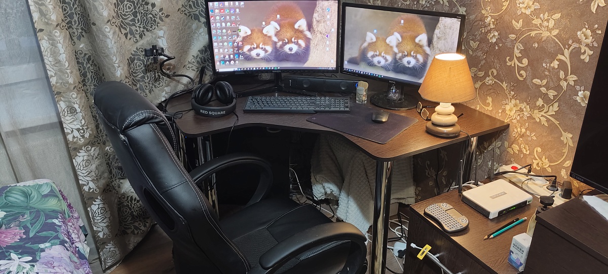 Стол удобный! Вмещает 2 монитора 21 с небольшим совершенно спокойно(размер 1100х1100) . Удобный вырез для залечь под стол и ножки положить(фото 3-4) .Подставка под монитор крайне удобная, нет никаких перемычек, спокойно можно присоединять провода ( фото 2). Кресло можно задвинуть. Тумба на колесах , можно закатить под стол , можно рядом. У меня рядом , еще дополнительное рабочее пространство. Размер можно заказать , у меня небольшая комната, влезло до сантиметра. Сборка легкая , нет сложных и громоздких элементов.