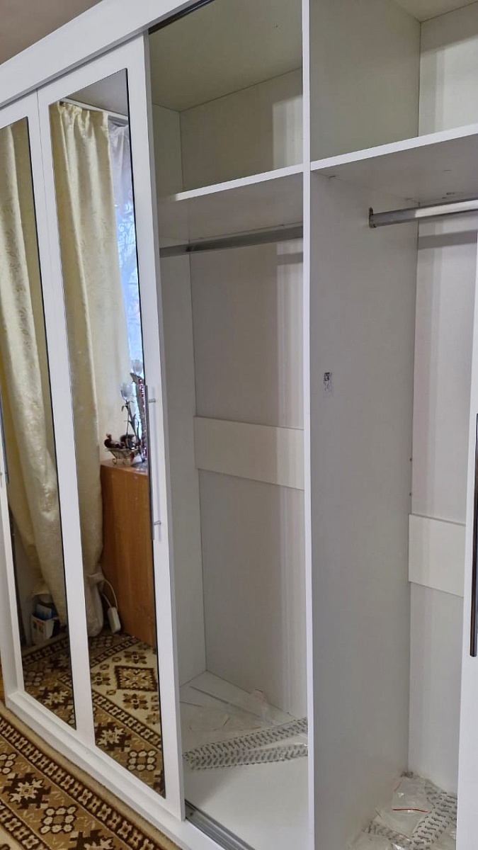 Хороший вместительный шкаф. Единственное зеркало не на всю дверь, с отступом. И не было с торца смягчителей, дверцы хлопали. Но на озон заказала на липкой основе и всё  хорошо.