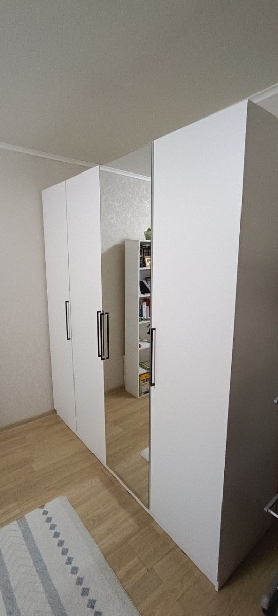 Шкаф качественный, вместительный. Порадовала возможность моделировать размеры.К сожалению, есть и недочёты: во-первых, малопонятная инструкция по сборке(она есть на фото, это всё, один лист с общей схемой)- собирали шкаф сами, и несколько раз приходилось переделывать отдельные моменты, потому что в инструкции нет пошаговой схемы.Во-вторых, зеркало на дверь. В первый раз, не подумав, прикрутили ручку прямо к стеклу (никаких прокладок в комплекте не идет)- в результате стекло сильно треснуло ещё на этапе сборки. Перезаказали дверь (с доплатой), спасибо отделу гарантий, вопрос решили очень быстро! Но и со второй дверью получилось не очень- купили специальные прокладки, дверь повесили, но она сама дала трещину (на фото можно увидеть). Радует, что не критично, пока будет так. Но покупателям советую или не брать зеркальную дверь вообще, или купить такой вариант, чтобы ручка монтировалась на дерево, потому что замена вам в некоторю сумму обойдётся. А так шкаф сам по себе очень хороший, и сервис тоже!